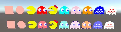 Both Halos come with 2 audio sounds: A spawn audio and a looping waka waka sound. Both can be turned off or on at will! The heavier version comes with every ghost available as a regular option and Audio Link option. The regular, lighter version only has Blinky (regular) and the Blue afraid ghost (Audio Link) as the materials.
