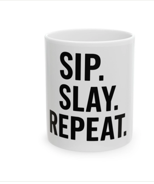 Sip. Slay. Repeat. – Bold Ceramic Mug for Coffee Queens