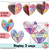 - Use 1 to display flat, 3 folded in half and glue back-to-back to create a 3D board display or use 5 to create a 3D hanging mobile or garland.