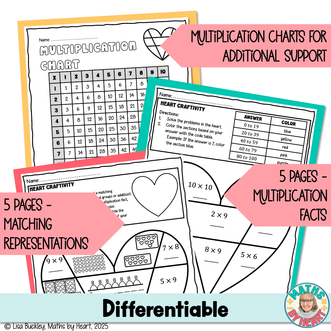 Are you struggling to engage your maths students with multiplication fact practice? Your students will love this Valentine's Day Craftivity for multiplication facts to 100.