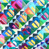 Newly revised, this pattern is a series of little heart-shaped houses, clustered around a square in a quilt named for the famous square in Dublin: Merrion Square. Included in this pattern are three versions: one of densely clustered houses around a central square, and another, where the houses are joined together by a colorful banner.