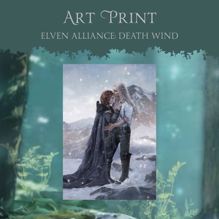 Art prints are 5" x 7" in a premium matte. Artwork by Sara Morello. These art prints are also available as bonus swag when you purchase signed copies of the Elven Alliance exclusive hardcovers. You can also purchase them at a discount with any purchase of an Elven Alliance paperback or hardcover.