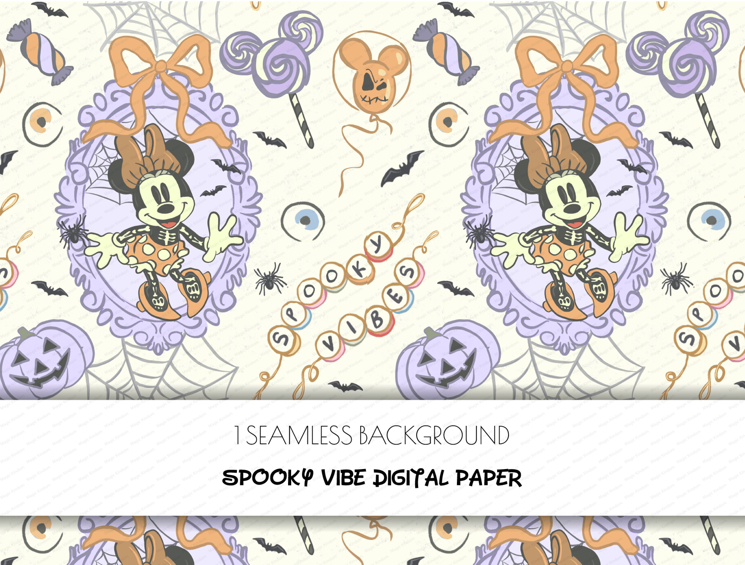 This Halloween Minnie Mouse Seamlessbackground will be perfectly sutable for projects such as printing projects, sublimation,party invites, scrapbooking, greeting cards !!!