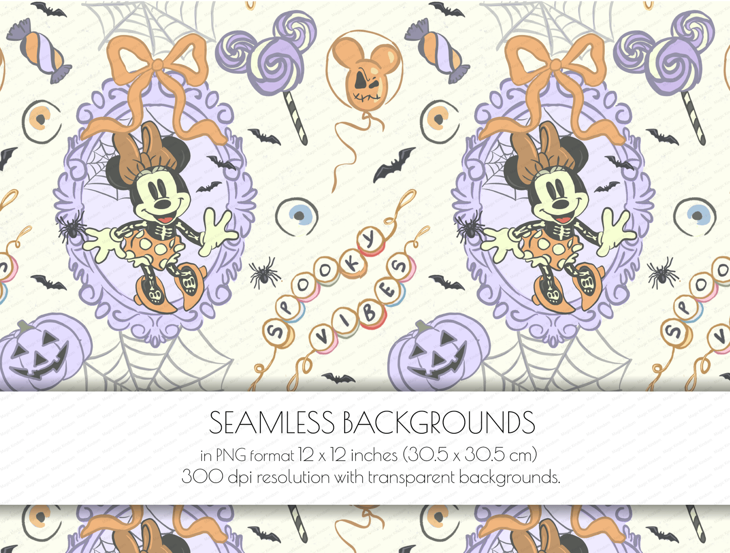 1 Halloween Minnie Mouse Seamlessbackground PNG format 12 x 12 inches (30.5 x 30.5 cm) 300 dpi resolution .
