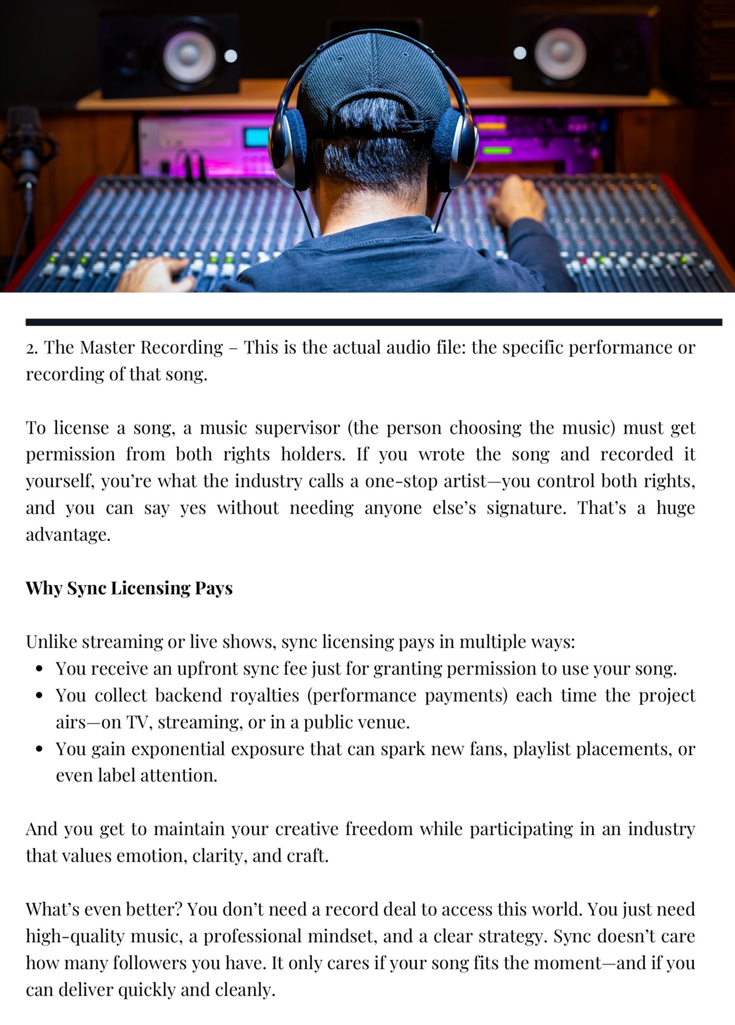 Whether you’re just getting started or ready to take your licensing game to the next level, this step-by-step guide will help you build a sustainable sync career—without confusion or overwhelm.