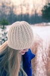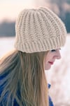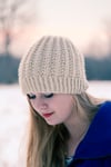 Size: 19.5” circumference and 9” height, after gentle blocking. With its very stretchy stitch pattern, this hat will fit most adults, or see Designer’s Notes for easy instructions to adjust its size.