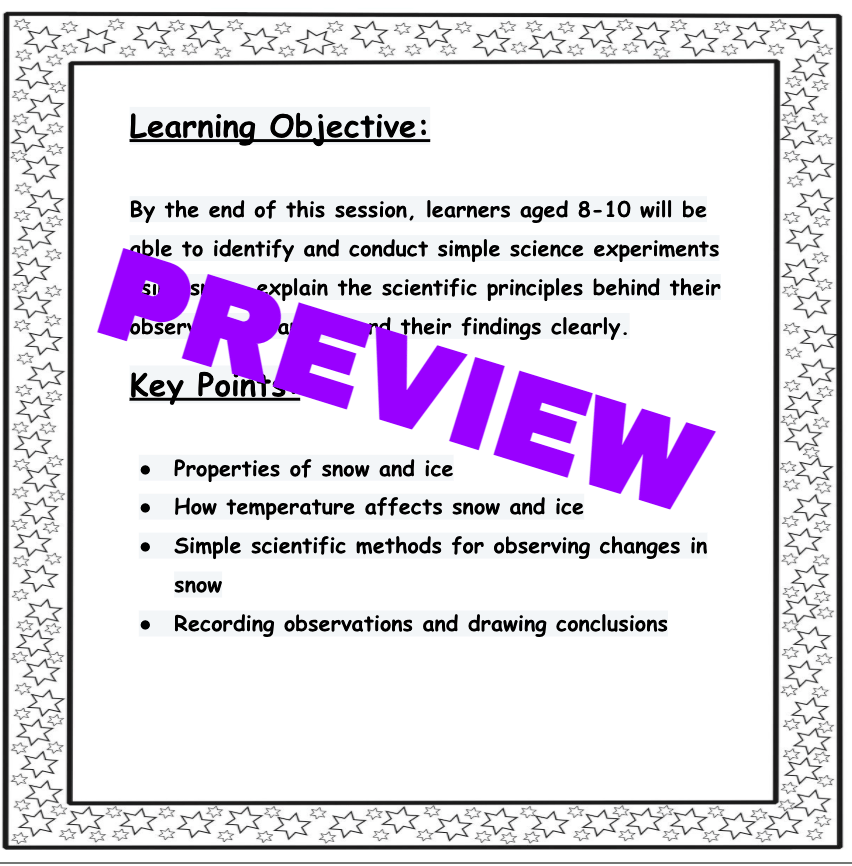SNOWY SCIENCE: LESSON PLAN WITH TEMPLATES/EXPERIMENTS- 2ND-4TH