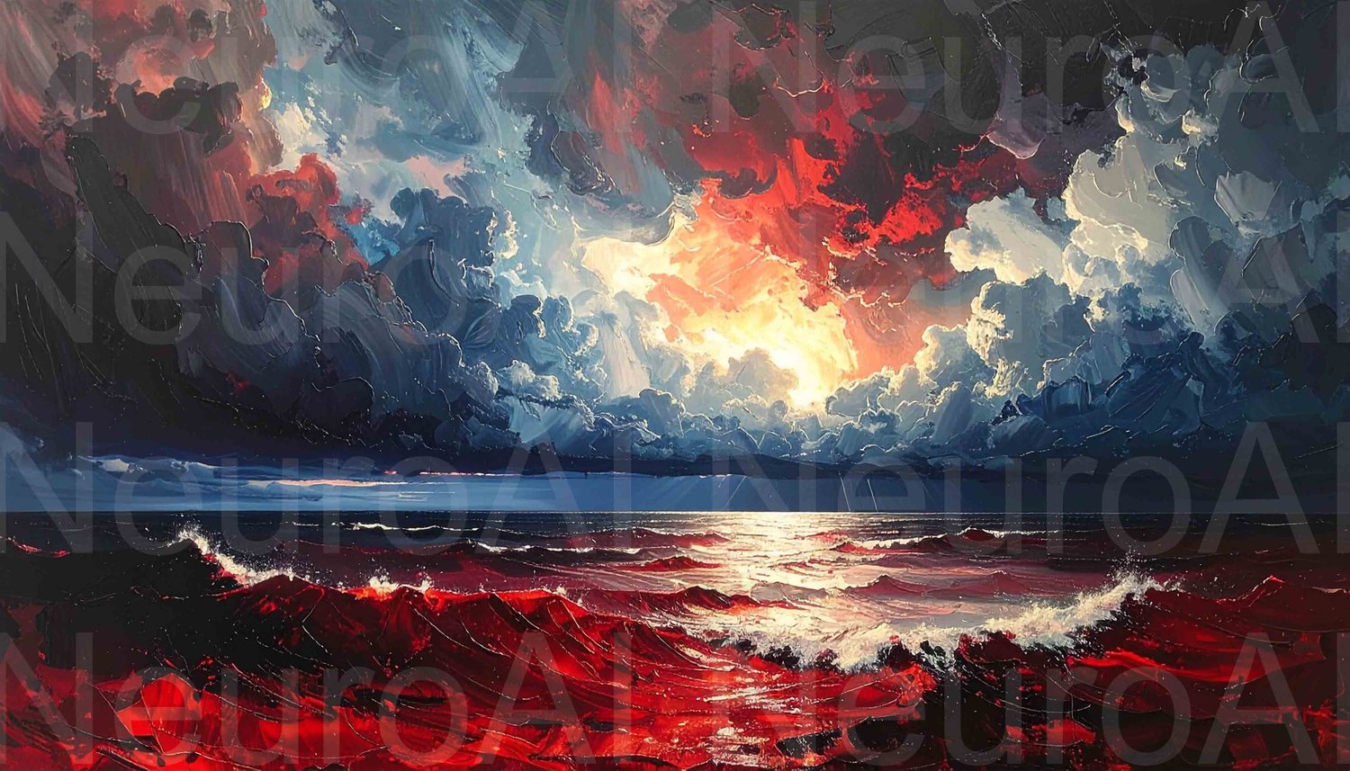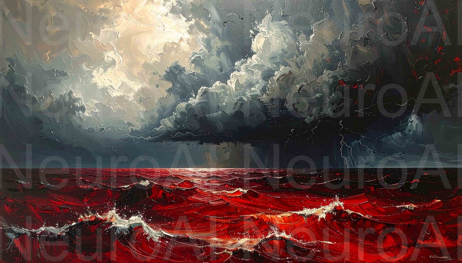 Stunning red sea landscape under stormy gray skies