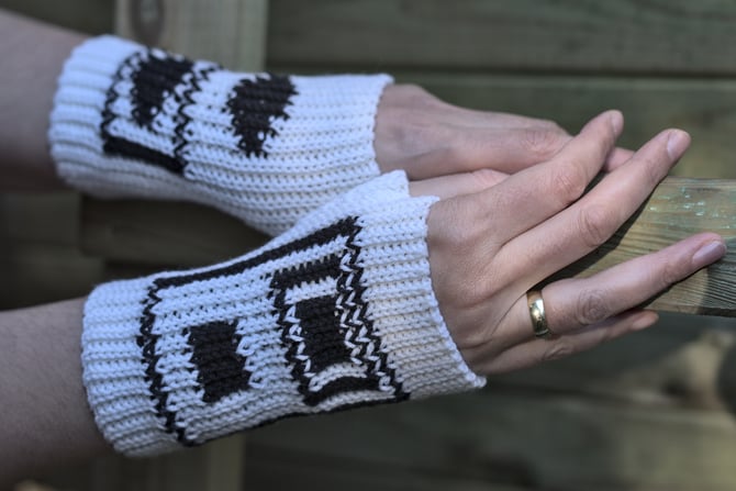 Die Pulswärmer werden aus hinten eingestochenen Kettmaschen gehäkelt.