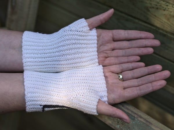These fingerless mitts are crocheted in back loop only slip stitch.