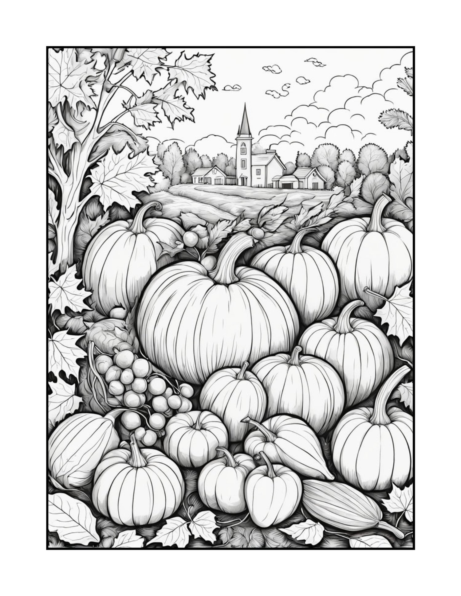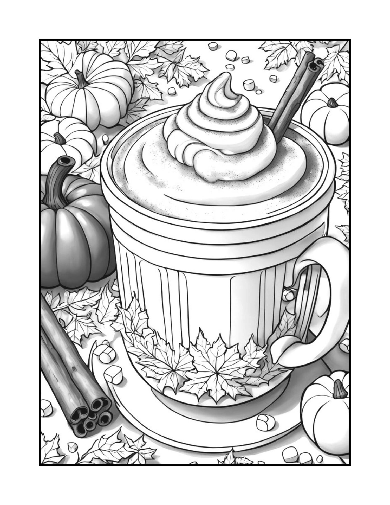 Step into a world of cozy fall vibes with Pumpkins, Leaves, and Autumn Dreams! 🍁 This enchanting coloring book invites you to embrace the magic of the season. Sip on a pumpkin spice latte ☕ as you color in scenes of crisp Autumn landscapes, festive pumpkins 🎃, and heartwarming fall treats like cranberry sauce 🫙, pumpkin soup 🍲, and delicious pumpkin pie 🥧.
