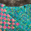 My medium sized sample has random squares of Squiggle Yarn Co “Shining Brightly” intermingled with the main yarn being Hedgehog Fibres Skinny Singles “Bubble”.