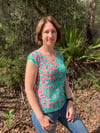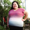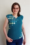 Tessellated Tee is a lightweight sleeveless top made entirely from Tunisian Simple Stitch entrelac squares (and a few triangles). The tee is worked from the top down and is joined under the armpits into rounds, making it completely seamless.