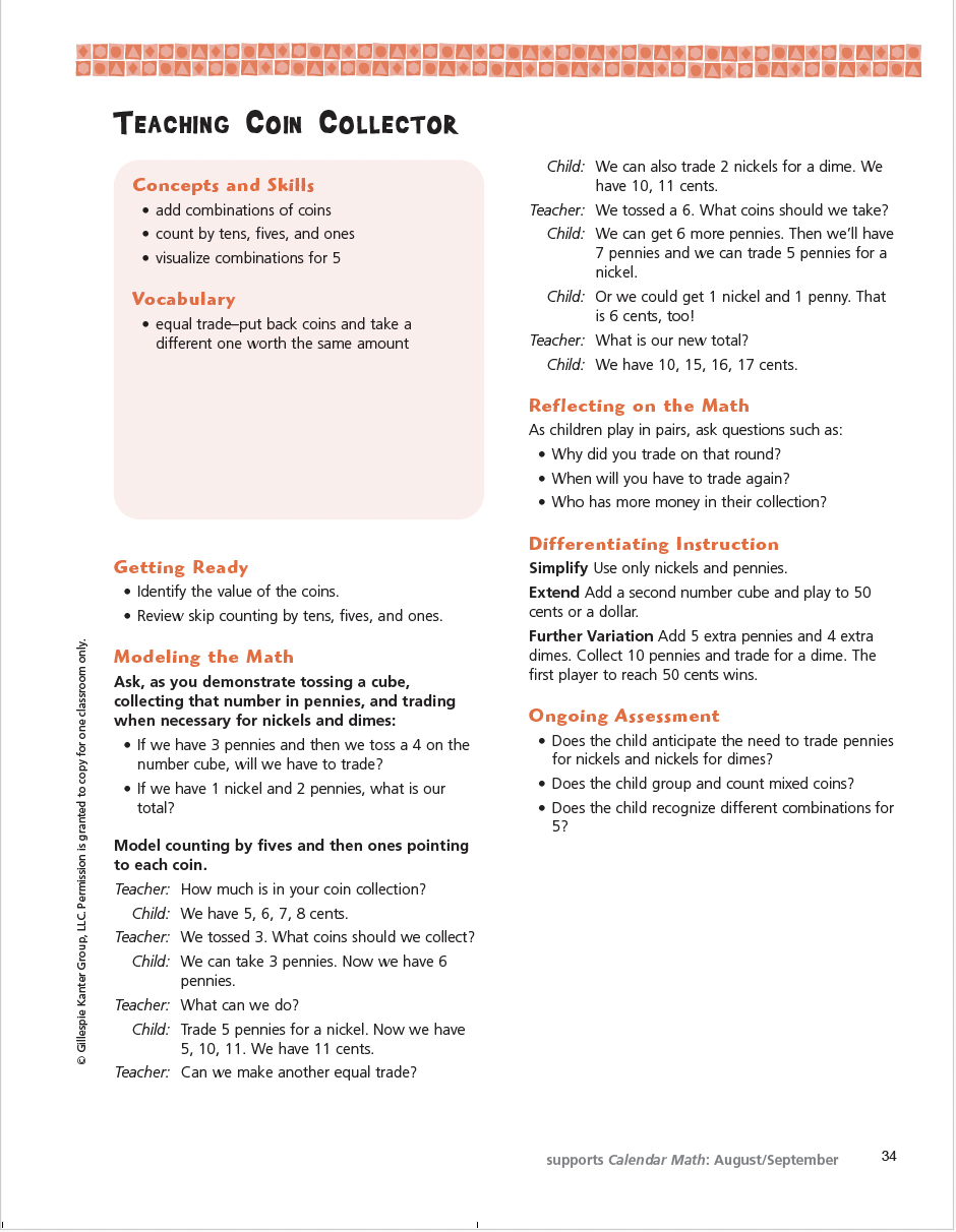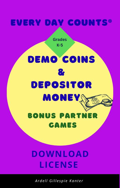Limited reproduction permission: The authors grant permission to individual teachers who have purchased this download to reproduce the Demo Coins, Depositors, and Play Money as hard copies only, as needed for use with their own students. Reproducing or distributing this material or portions of it in any other format is prohibited. Reproduction for an entire grade level, school, or district, or for commercial use is prohibited. For a school-wide or district-wide download license for multiple users, address inquiries to Gillespie Kanter Group, LLC, Email: permissions@gillespiekanter.com All other rights are reserved to Gillespie Kanter Group, LLC.