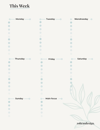 - Weekly page to organizes you key tasks