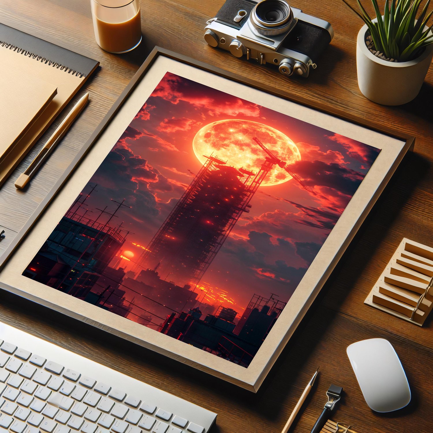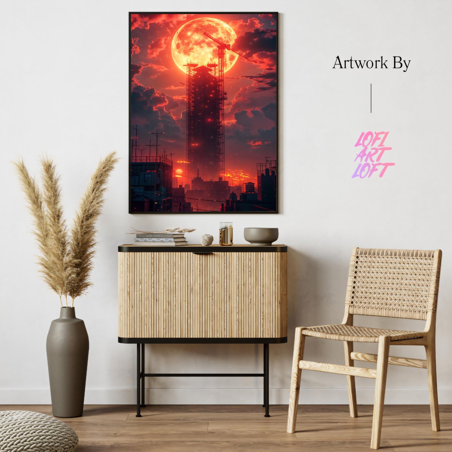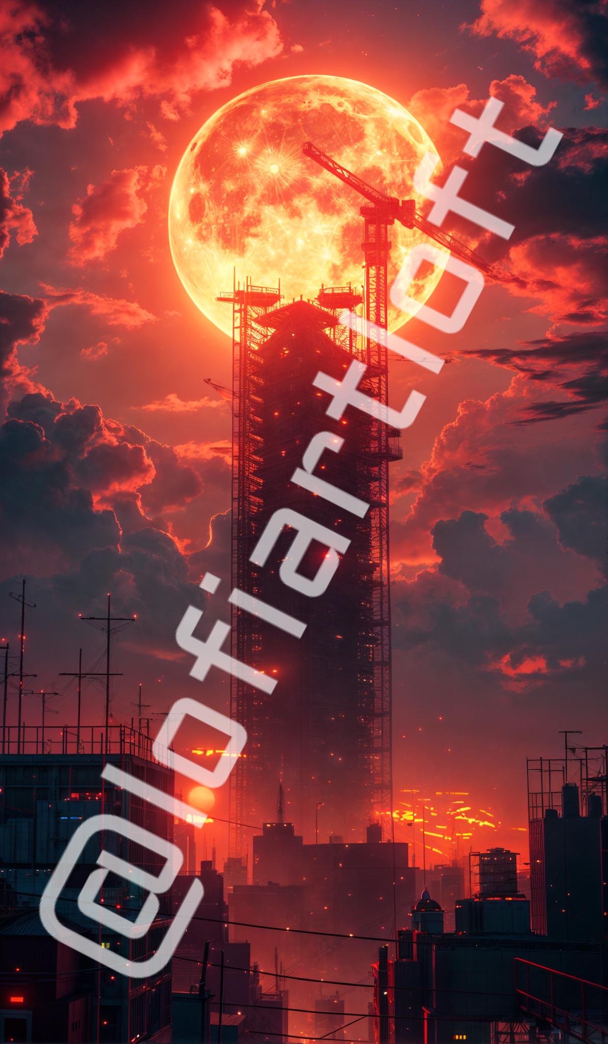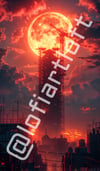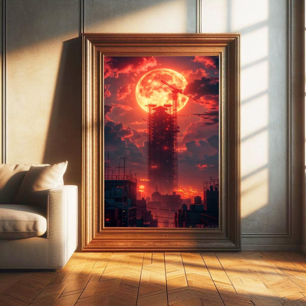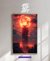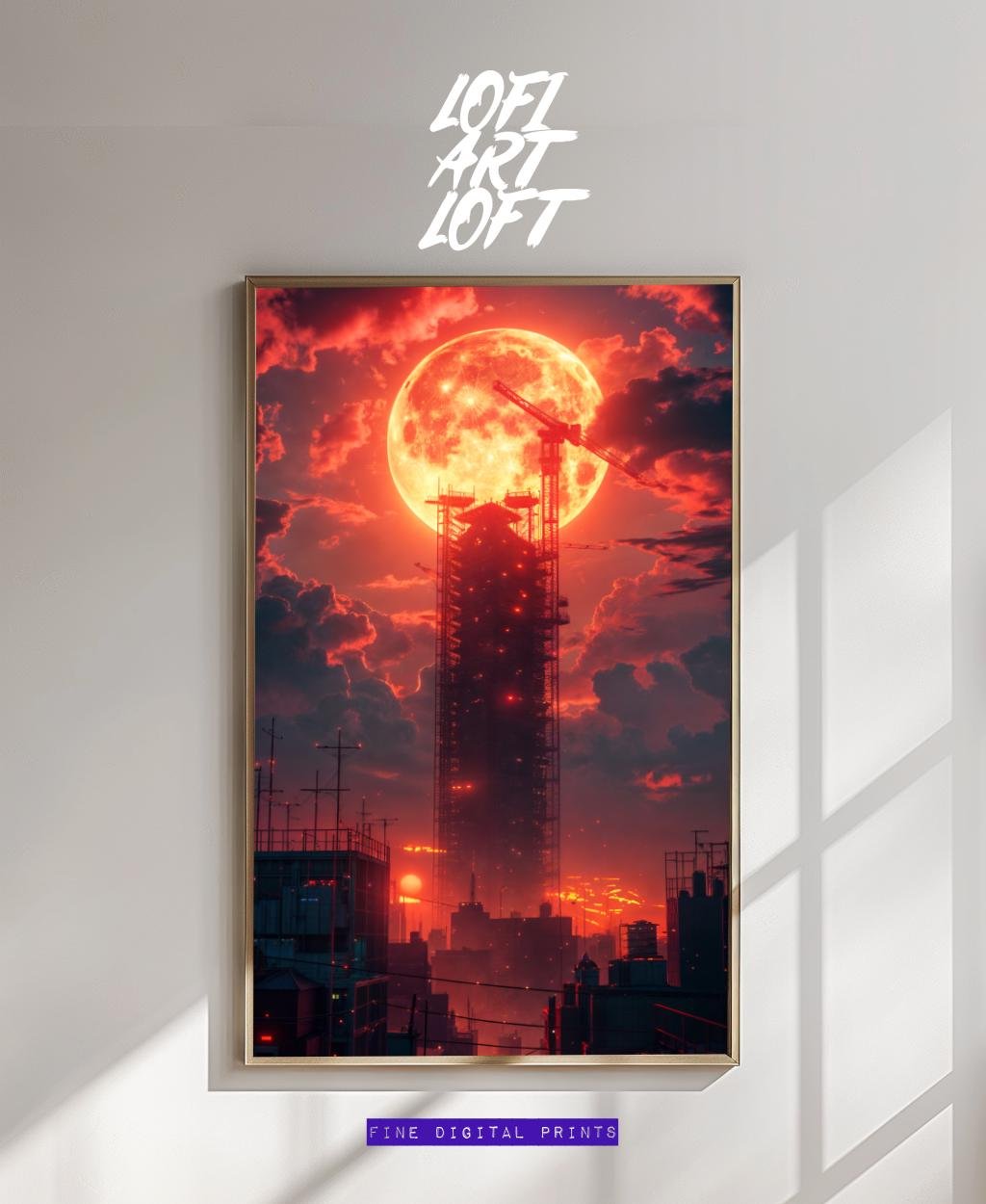 Red Moon Cityscape - UHQ Digital Lofi Anime Art Print | #29