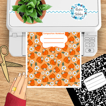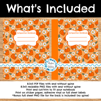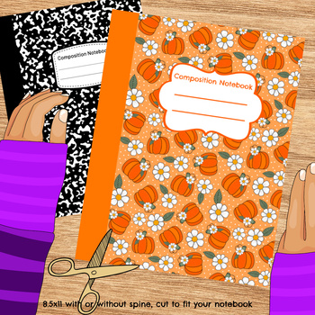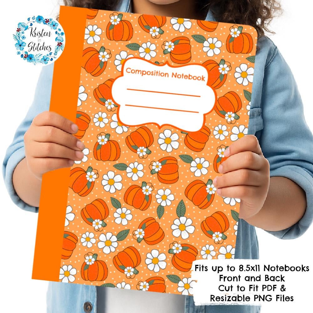 Composition Notebook Cover, Printable Resizable PNG, PDF, Halloween Pumpkins and Daisy Flowers