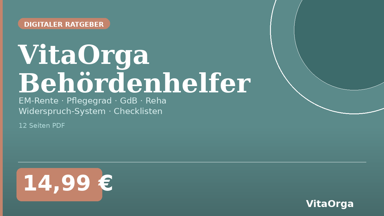 12 Seiten konzentriertes Wissen für alle wichtigen Anträge bei chronischer Krankheit in Deutschland. Schritt-für-Schritt-Aktionspfade für EM-Rente, Pflegegrad, Schwerbehindertenausweis, Grundsicherung, Zuzahlungsbefreiung, Reha und Haushaltshilfe.