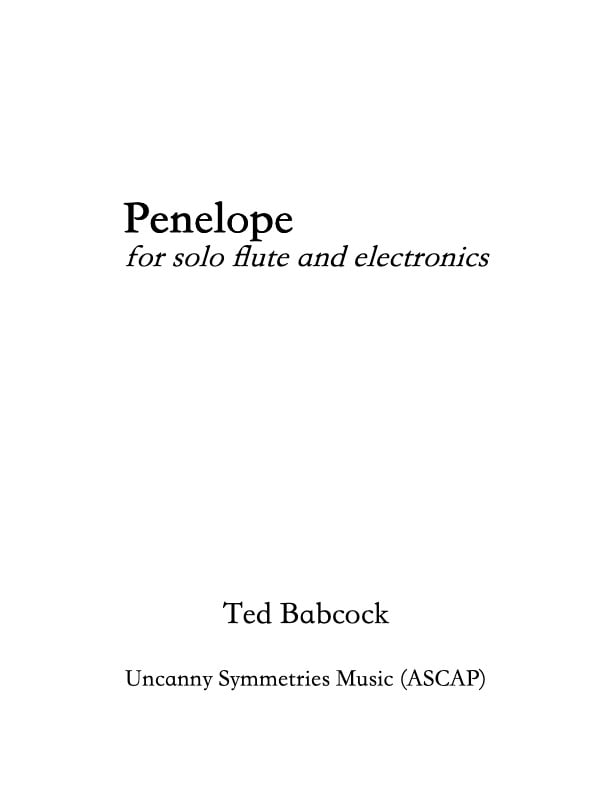 This is a digital download for a PDF of the score for Penelope. Your purchase also includes a WAV file of the electronic part and a click track.