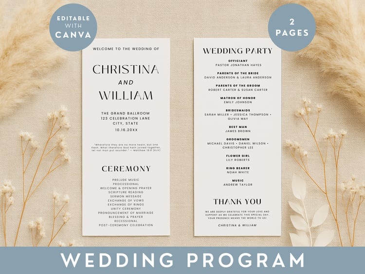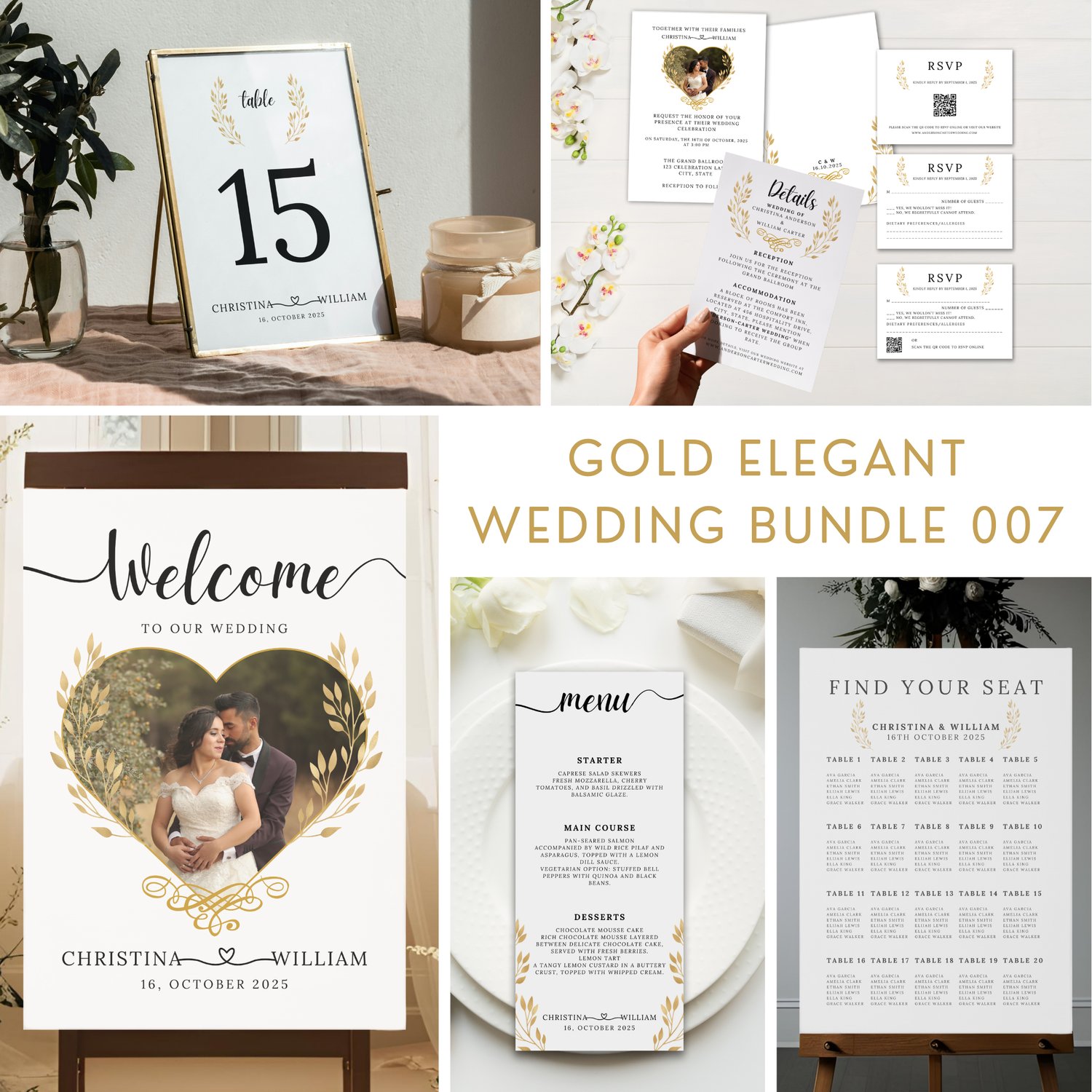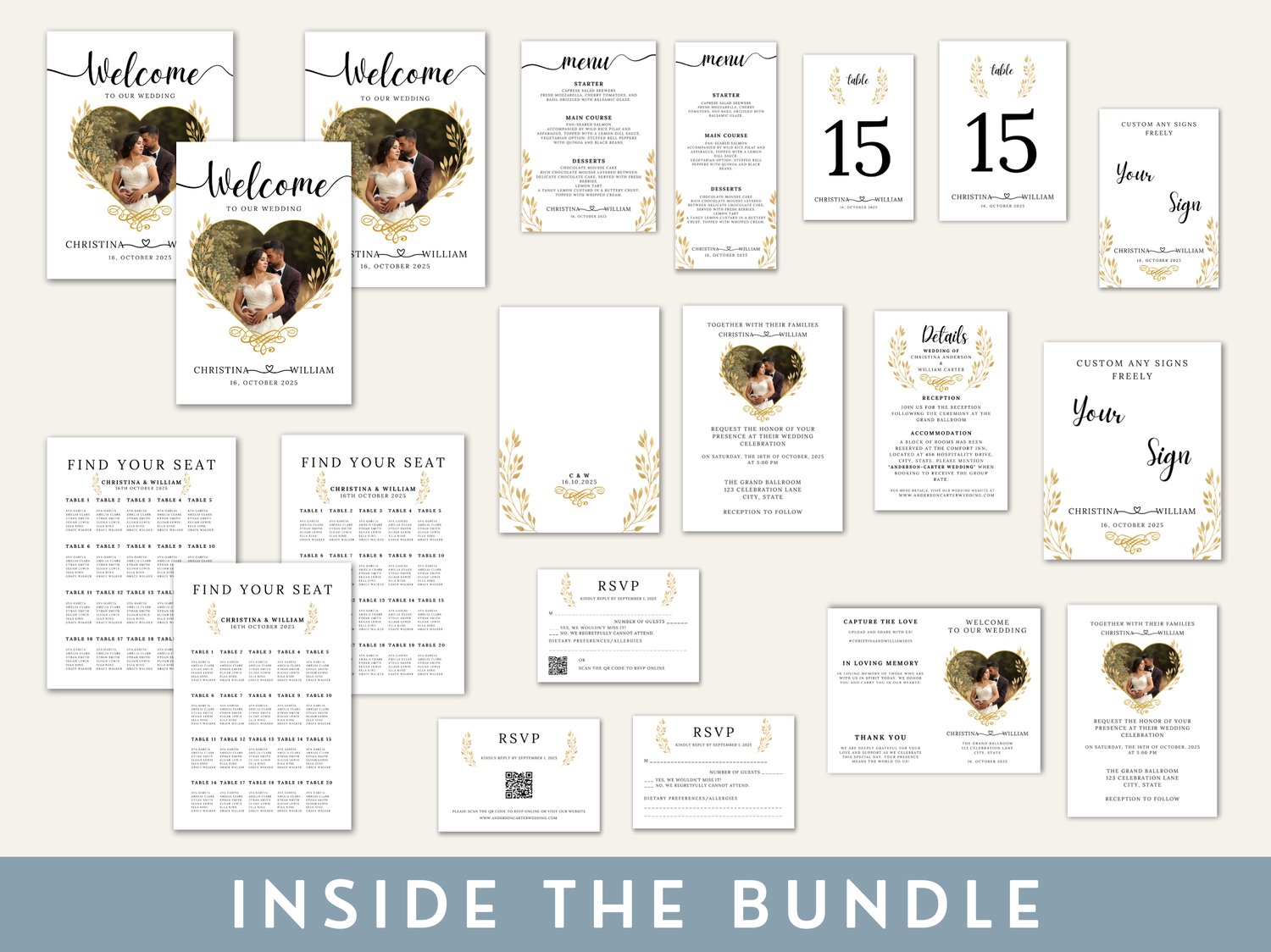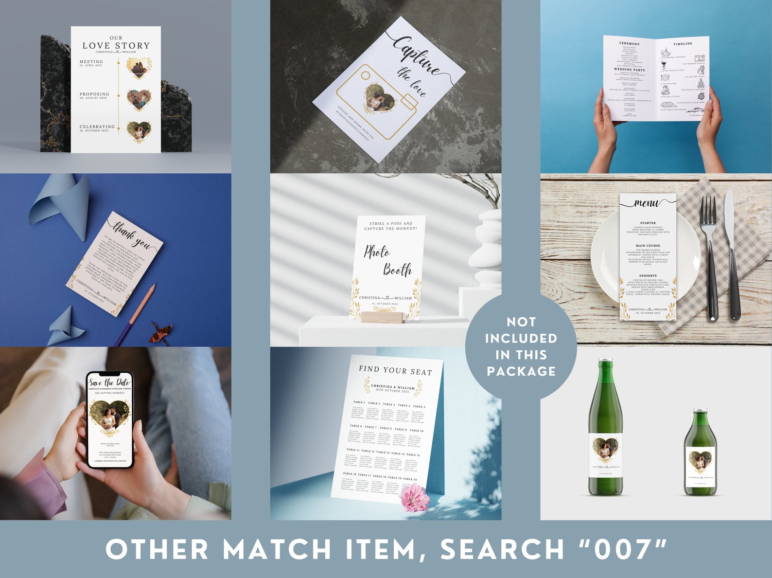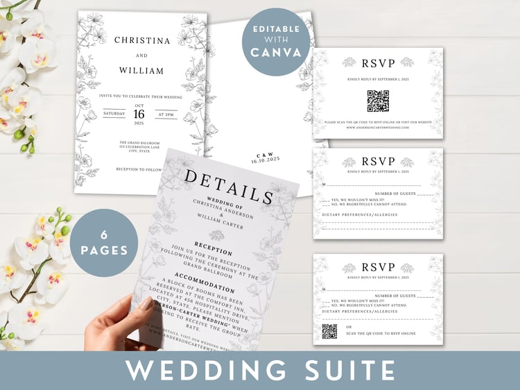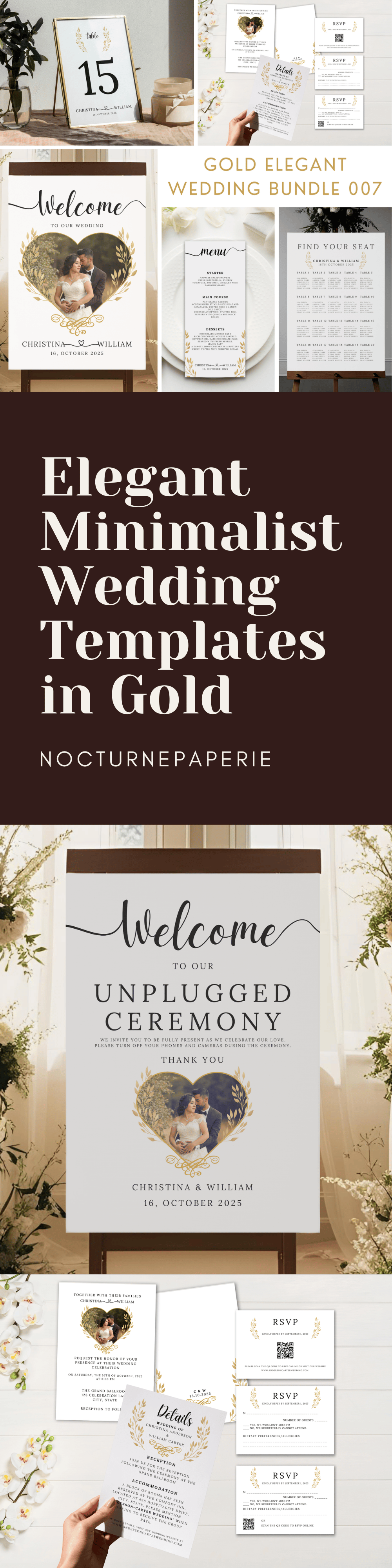 Minimalist Wedding Kit Editable Canva Invitation Suite Template Personalized Ceremony Bundle For Wedding Event Stationery Set Custom DIY 007