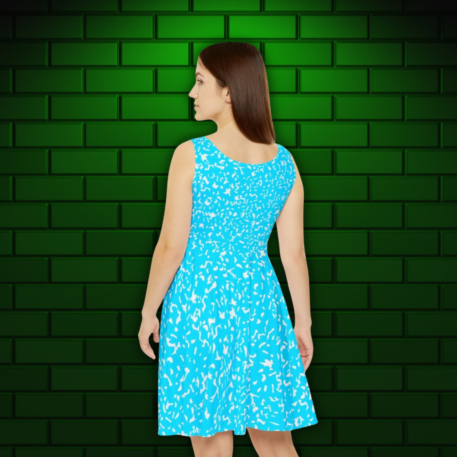 Step into summer in style with this eye-catching Bright Blue Composition Notebook Skater Dress. Featuring a flattering scoop-shaped, high-cut neckline and a playful asymmetrical skirt, this dress blends comfort with a bold, statement-making pattern. Perfect for sunny days, casual hangouts, or festive celebrations, it’s the kind of piece that makes you feel effortlessly confident and ready for anything. Whether you’re heading to a park picnic, a birthday party, or just enjoying a laid-back afternoon with friends, this dress is designed to turn heads while keeping you comfortable.