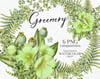 Greenery: fern, poppy head, hellebore, foliage. Wreaths with leaves, twigs, flowers