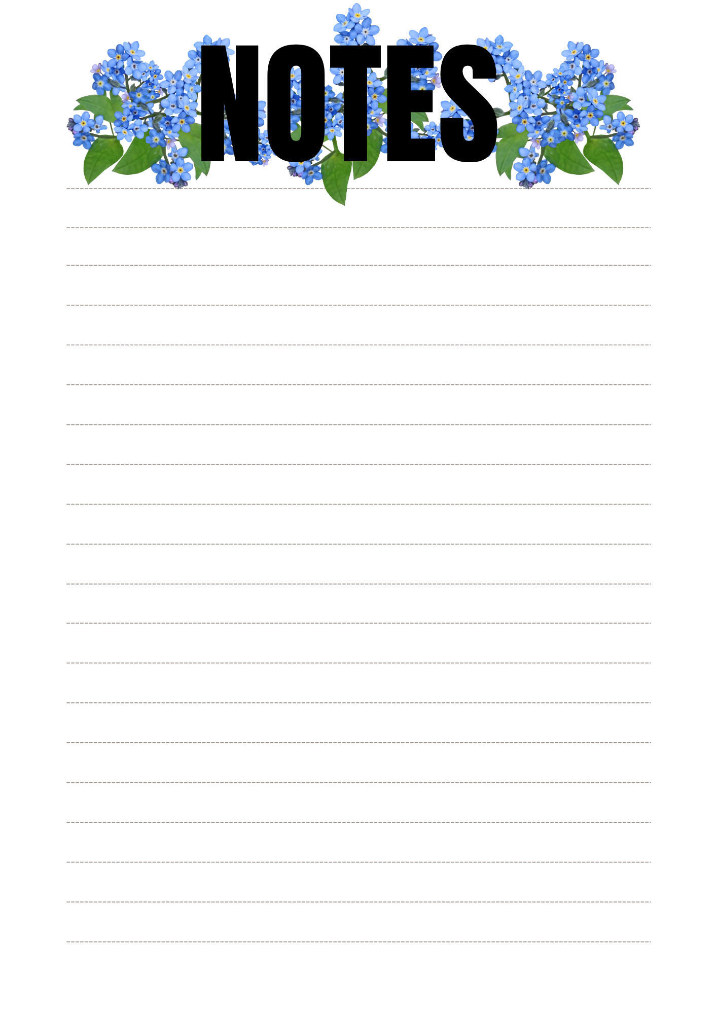 This Blue Flowers Notes is a lined note sheet.