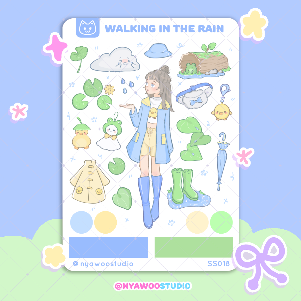 Walking in the Rain Sticker Sheet for Planners, Scrapbooks, and Journals | Rainy Day Aesthetics