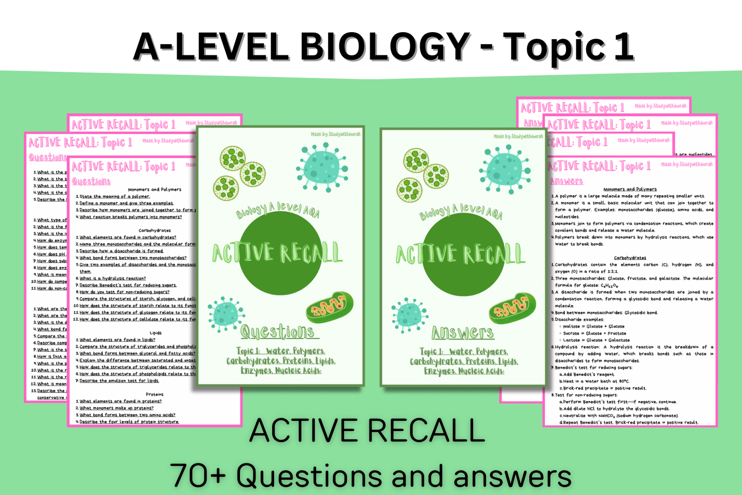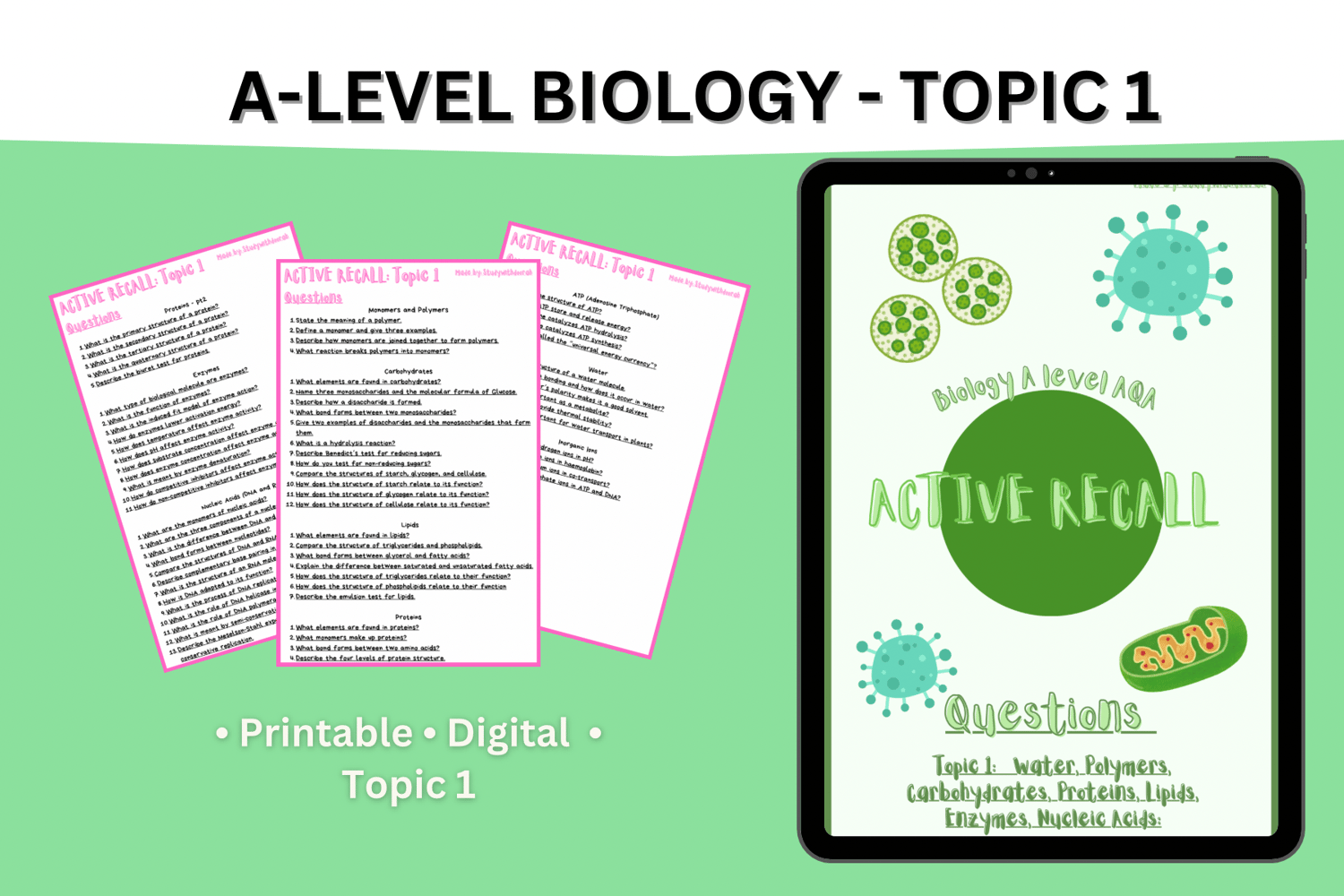 Struggling with Biological Molecules? This active recall resource is packed with 70+ exam-style questions designed to strengthen your understanding of key concepts, including:
