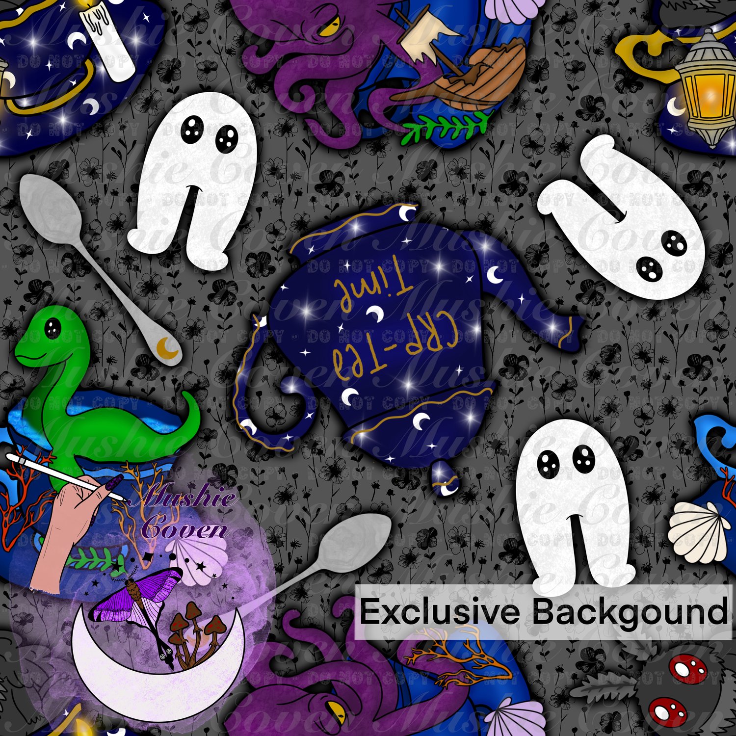 Crp-Tea Time Exclusive Background Seamless (black floral on grey background)