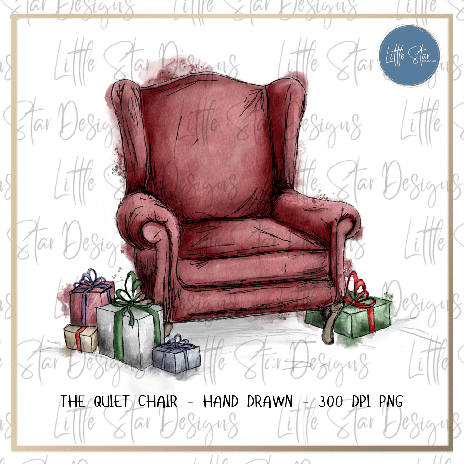 This is a high-quality hand drawn (300dpi PNG) digital download of my original artwork, titled 'The Quiet Chair', designed for sublimation and print.