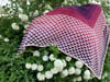 Intermingled is a top-down triangle shawl. It starts with a garter tab and each of the gradient colors is worked in turn in garter stitch, before the mosaic stitch pattern livens up the knitting. With a simple eight-stitch/eight-row mosaic pattern, the shawl grows quickly as you enjoy intermingling the colors you have chosen.