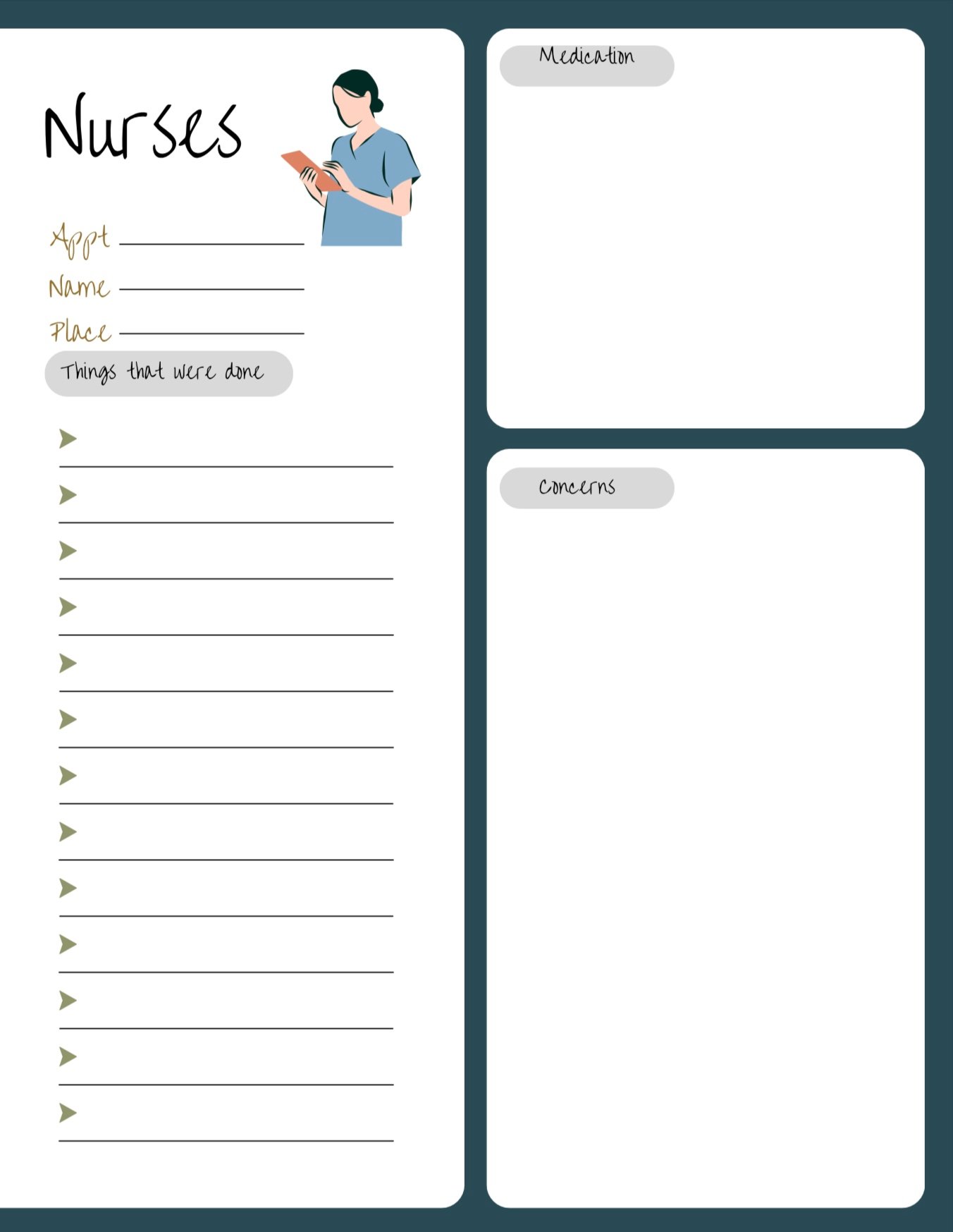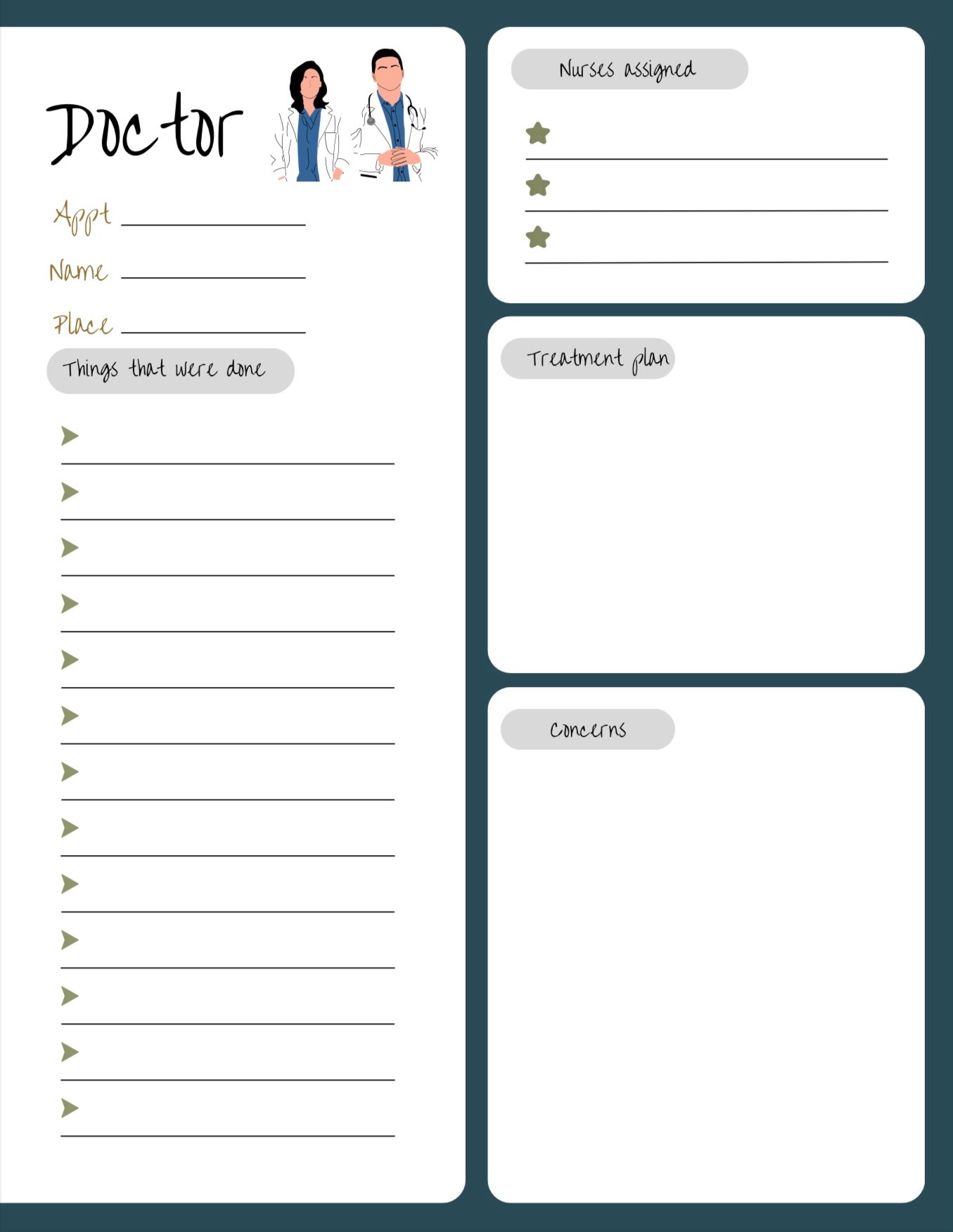 Inside of this planner you can keep track of doctors, nurses , medications , blood sugar, blood pressure, vaccines, producers and medical conditions