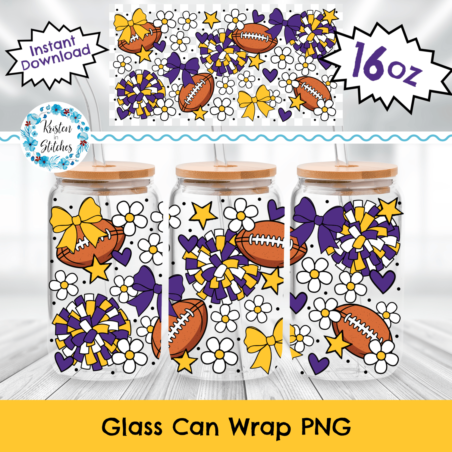 Football Team 16 oz Glass Can Wrap Transparent PNG, Minnesota Vikings Cheer Colors Purple and Yellow Gold