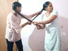 Friends 1litre heavyoiling & pulling braids hard to punish for rejecting haircut