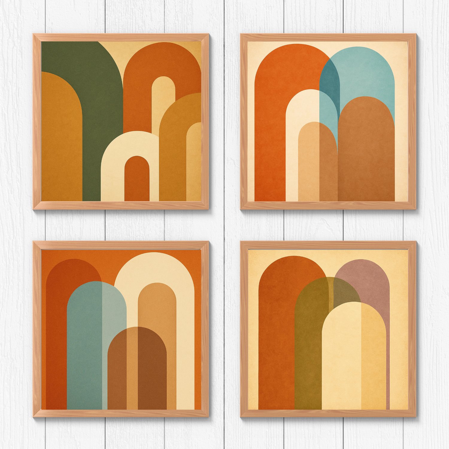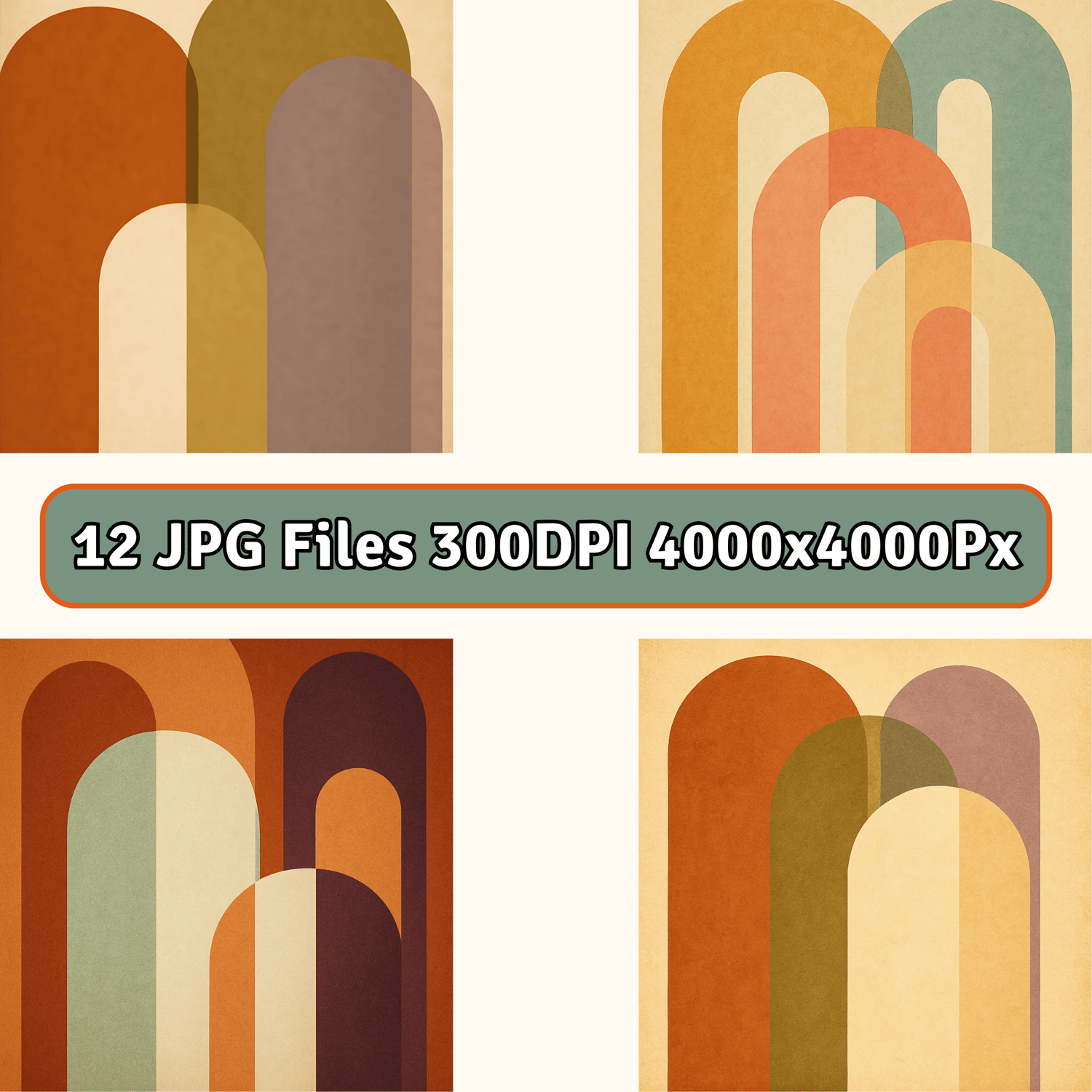 Elevate your creative projects with this stylish pack of retro abstract background designs. Inspired by mid-century modern aesthetics, this collection features bold arch shapes, vintage color palettes, and warm textured finishes. These high-resolution JPG files are ideal for creators looking to add a trendy retro vibe to their visual content.