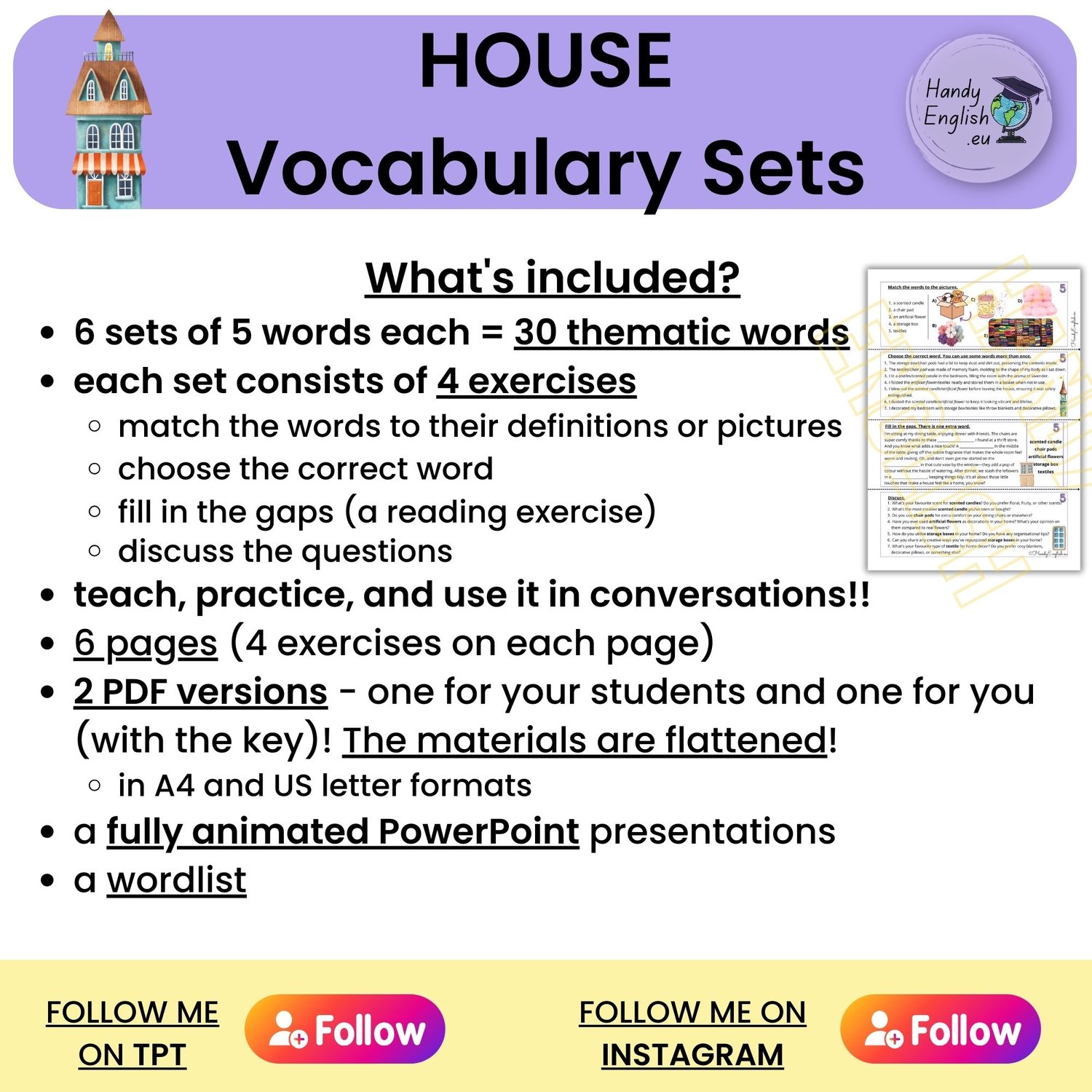 - A set of HOUSE Vocabulary worksheets and speaking activities
