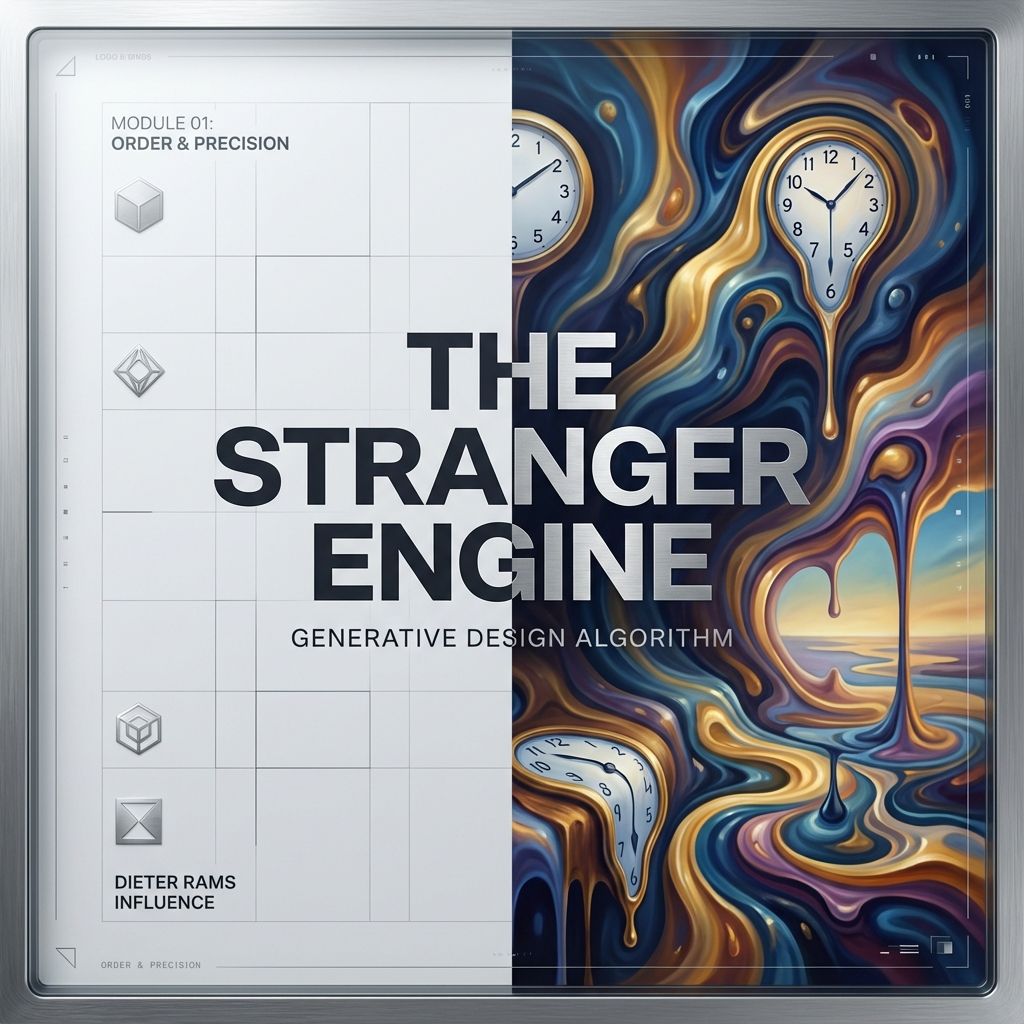 Most AI logos look generic. This engine is different. It uses a proprietary Semantic Splitting Algorithm to force a collision between total Order (Rams) and total Chaos (Dalí).