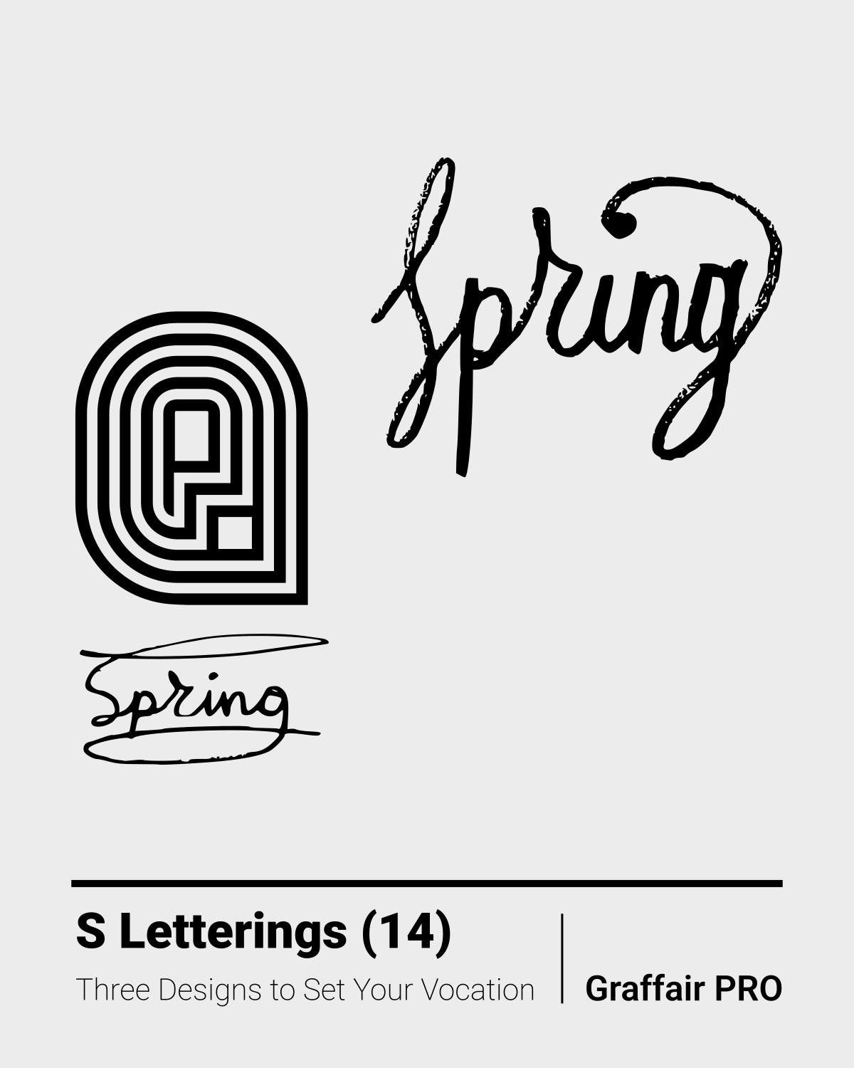 S Letterings (14): The 14th set of three original "S" logo lettering designs to edit and evolve your typography on your visual branding project. These letterings are part of the "800 SVG Letterings" bundle, which also contains 800 other exceptional designs.