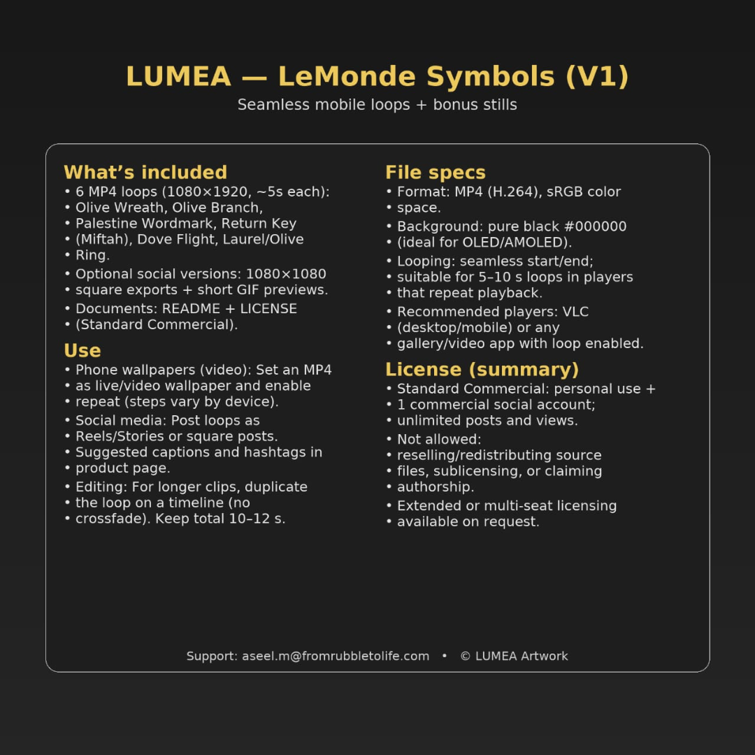 LUMEA LeMonde V1 — Palestinian Symbols Animated Loops (6×MP4, Vertical 9:16, 5s)