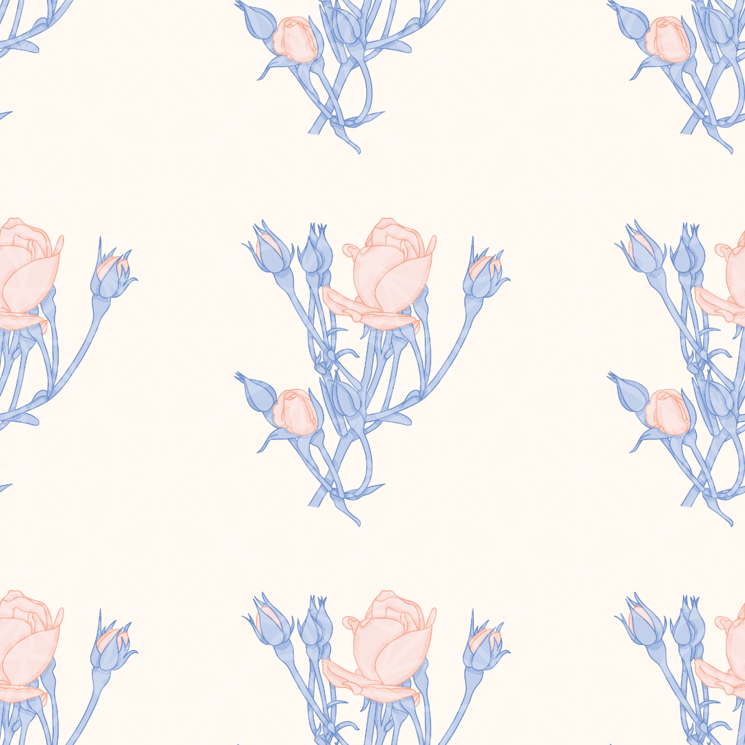 Crosshatching Rose Buds Vector Repeat Pattern