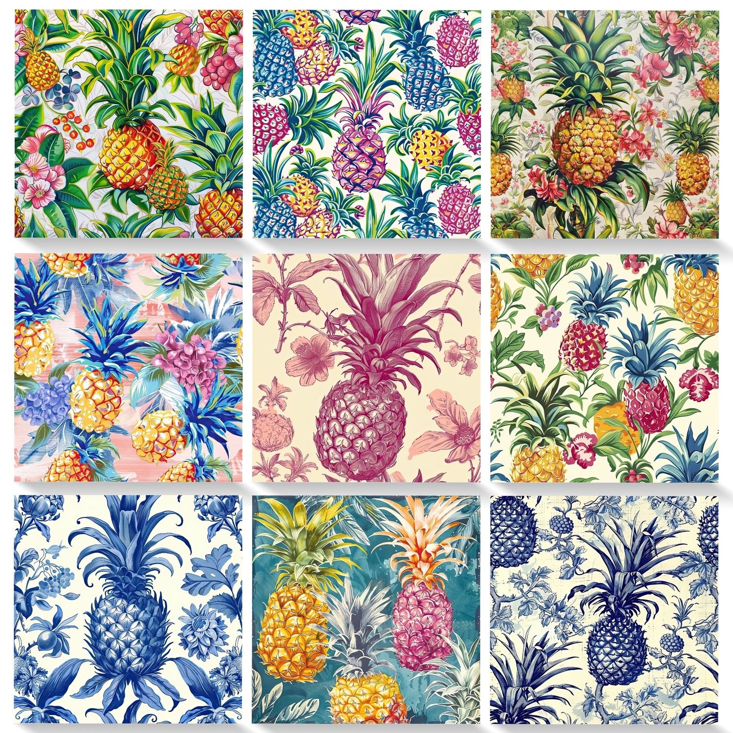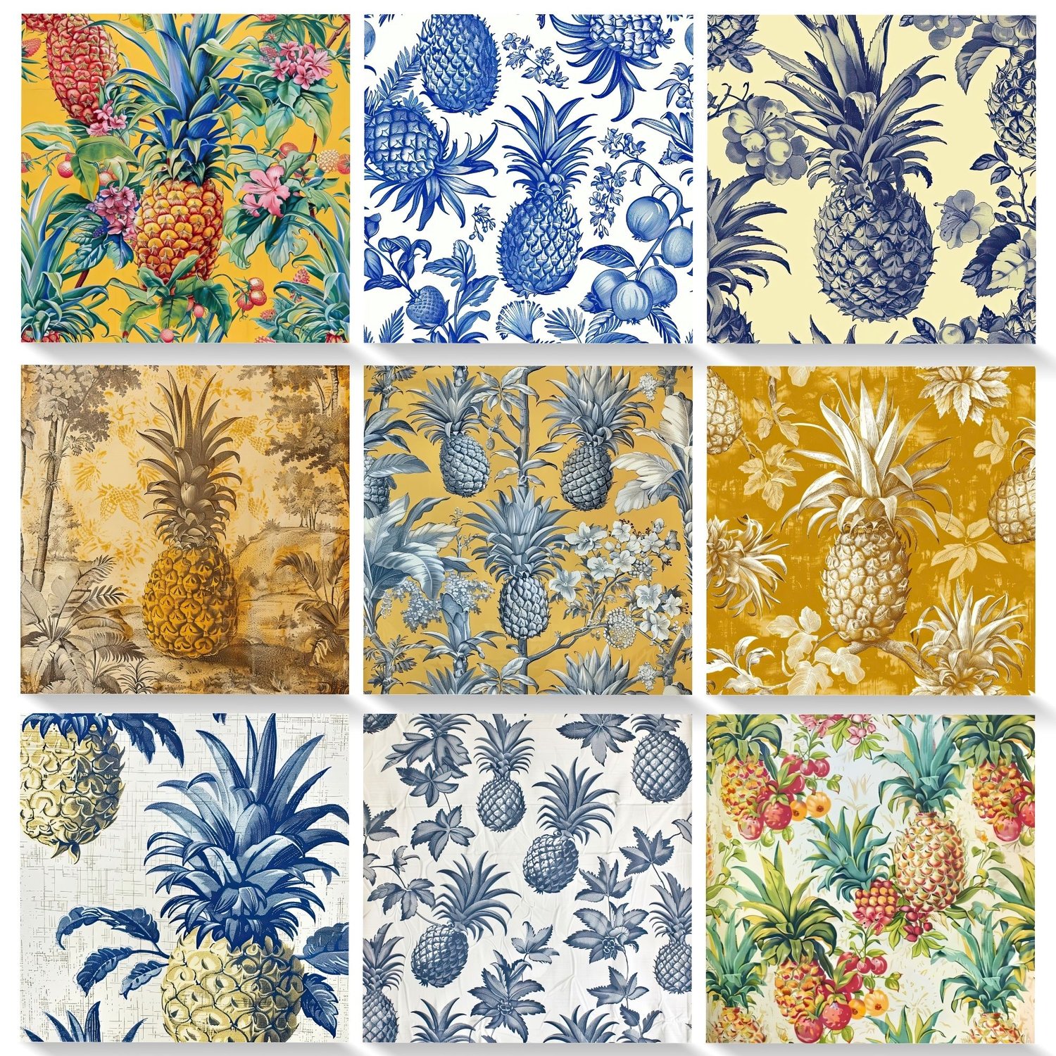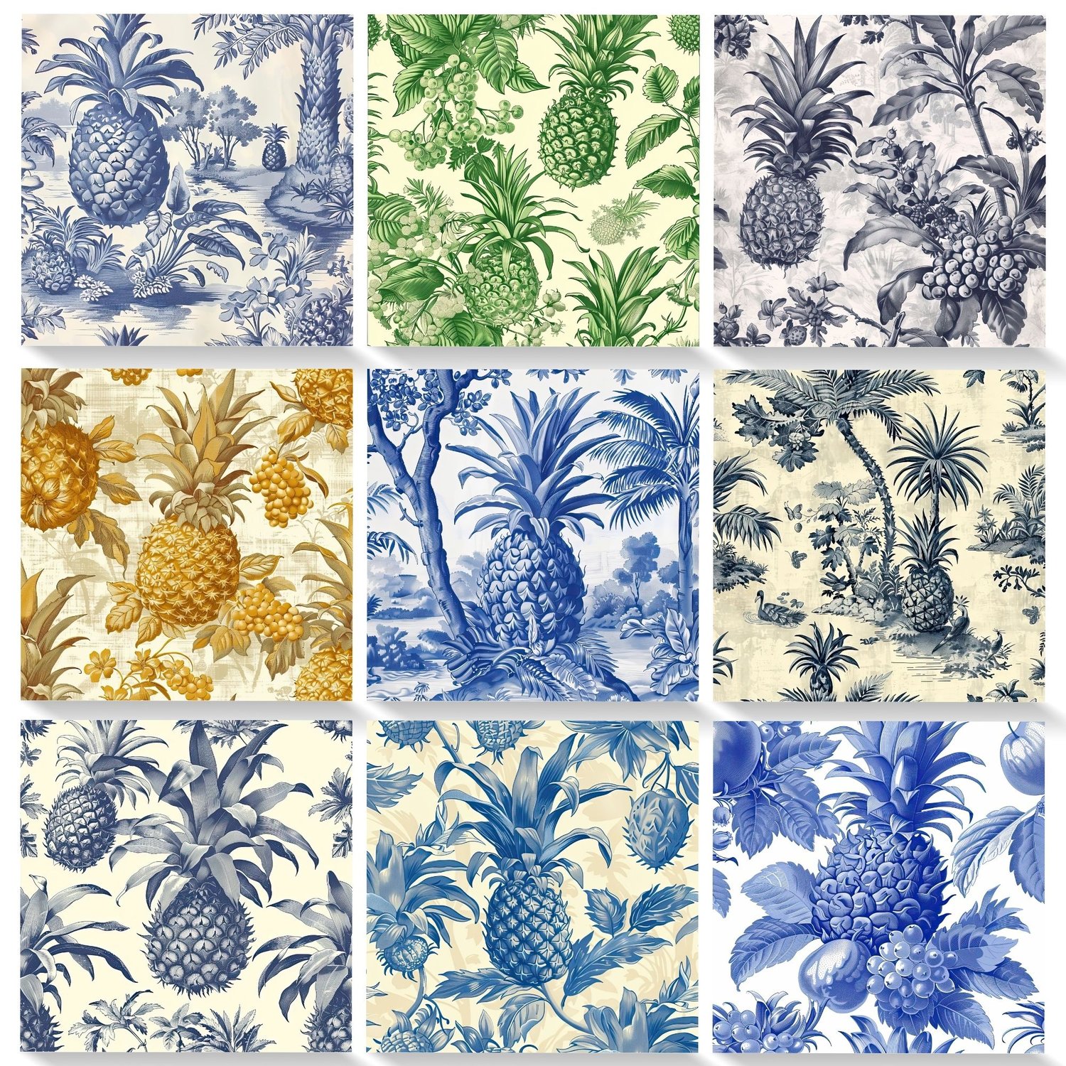 ✨ Scrapbooking Delight: Infuse your scrapbook pages with the charm of toile patterns combined with the freshness of pineapples. Ideal for summer memories, travel journals, and more.