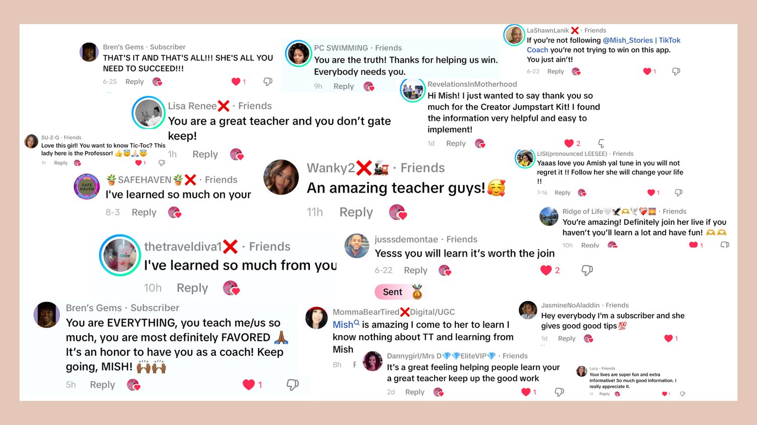 “I joined TikTok in February 2025 with no real direction. After my first four Lives averaged just 354 viewers, I booked a consultation with Mish Stories, the creator behind the Creator Empire Academy. Once I implemented her strategic recommendations, my next eight Lives averaged 3,500 viewers. After a follow up consultation and applying the updated strategies, the six Lives that followed averaged 5,300 viewers. The growth has been remarkable, and I’m excited to see how much further I can go using Mish’s proven approach.”