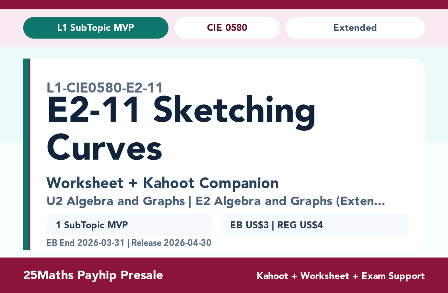 Master Sketching Curves for your CIE 0580 Extended Exam with our Interactive Practice Suite! Whether you're a student securing your advanced marks or a teacher looking for engaging classroom resources, this worksheet and Kahoot combo is built directly from the official CIE syllabus.