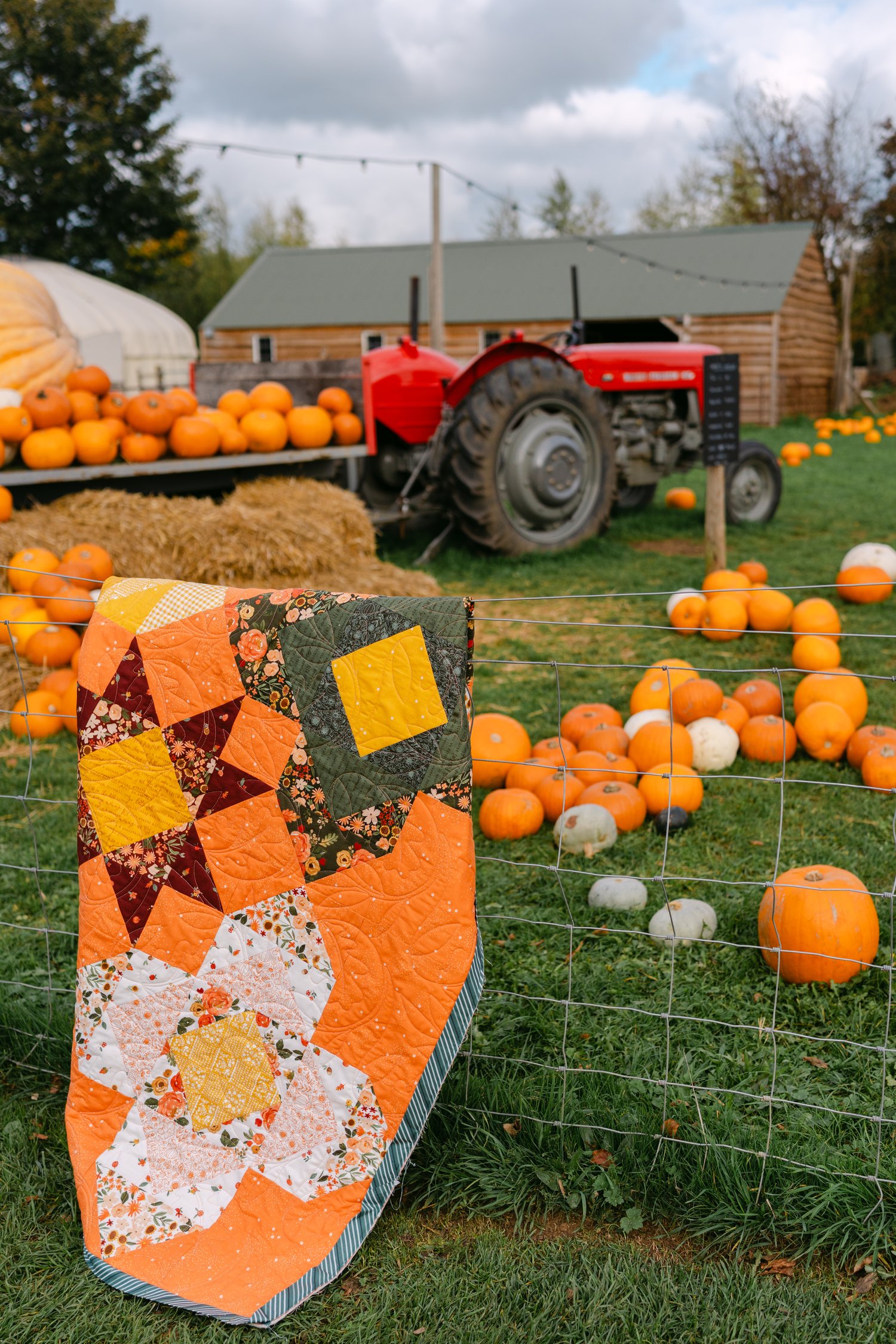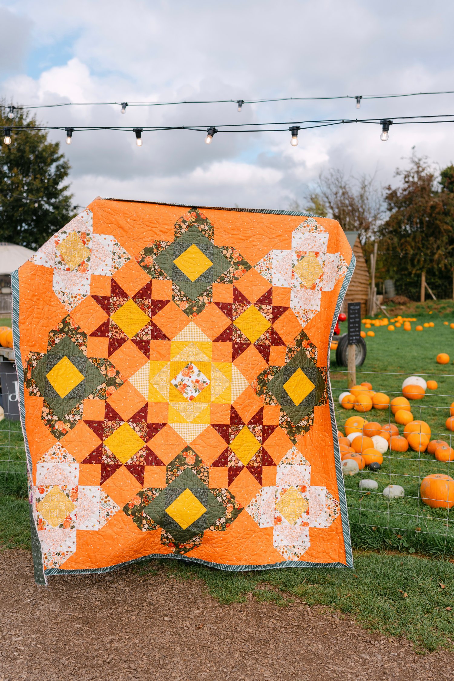 Wrap your space in cosy autumn vibes with this 72" x 72" handmade quilt, created with the Happy Falls Day collection by Riley Blake Designs, featuring prints by designer Kelsey Carlson. Traditional patchwork blocks, warm seasonal tones and playful fall motifs come together to create a timeless quilt. Perfect as a sofa throw, a bed topper, or a seasonal statement piece in your home.