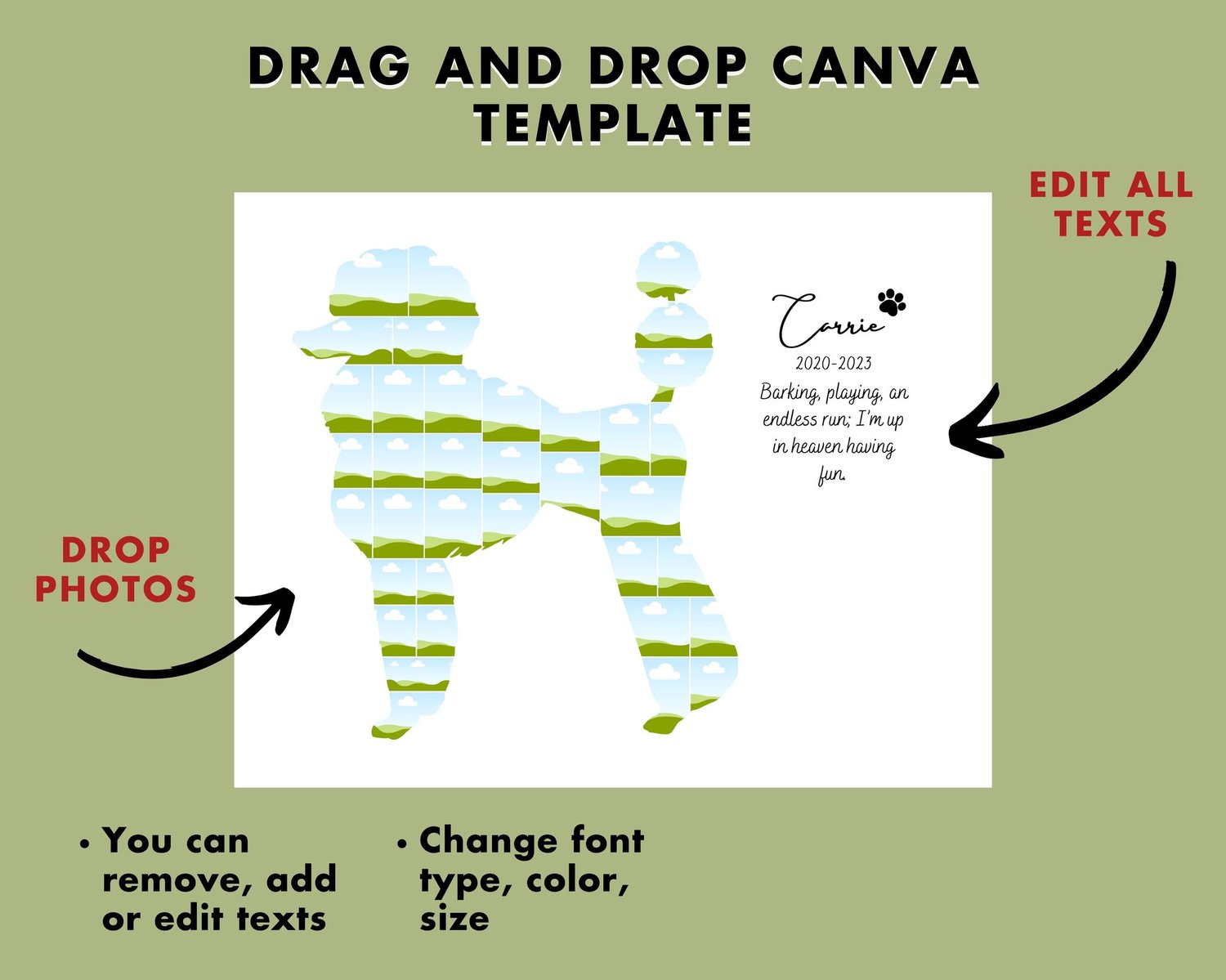 DIGITAL Poodle Gift for Dog Memorial Photo Collage Template, Remembering Puppy Loss, Funeral Photo Print, French Poodle