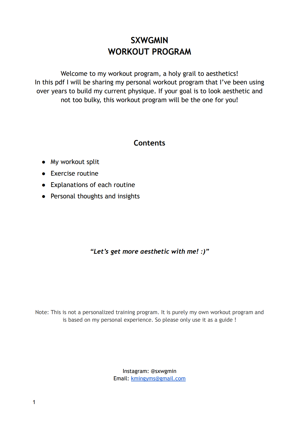 SXWGMIN WORKOUT PROGRAM - ROAD TO AESTHETICS