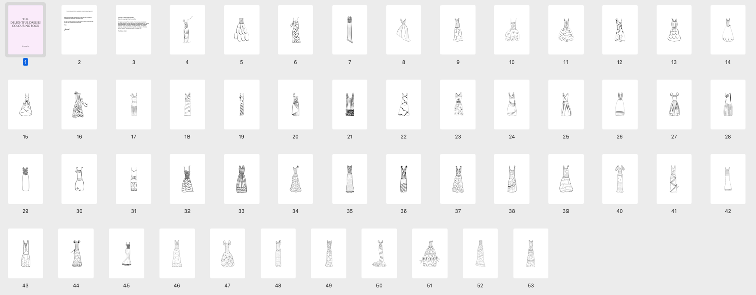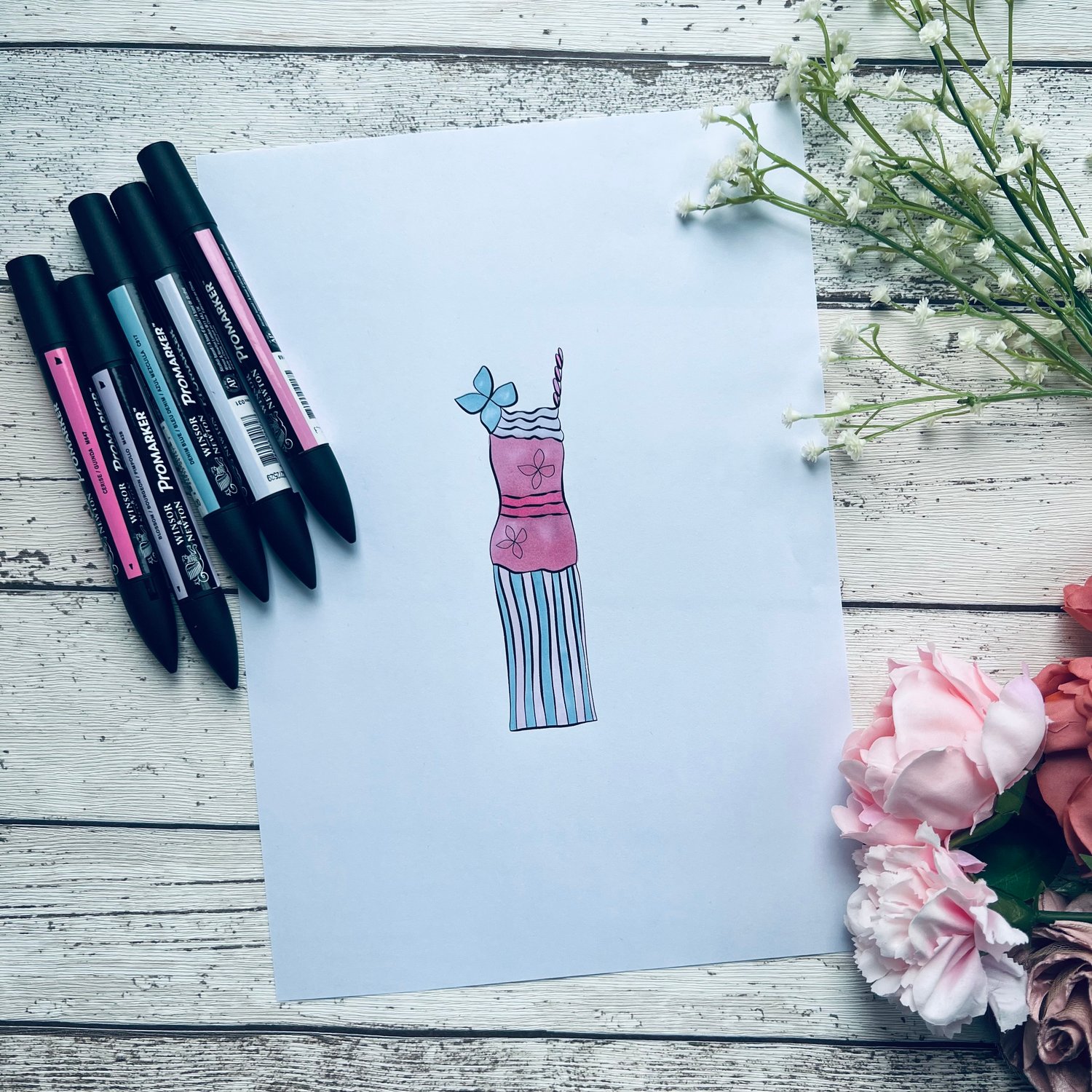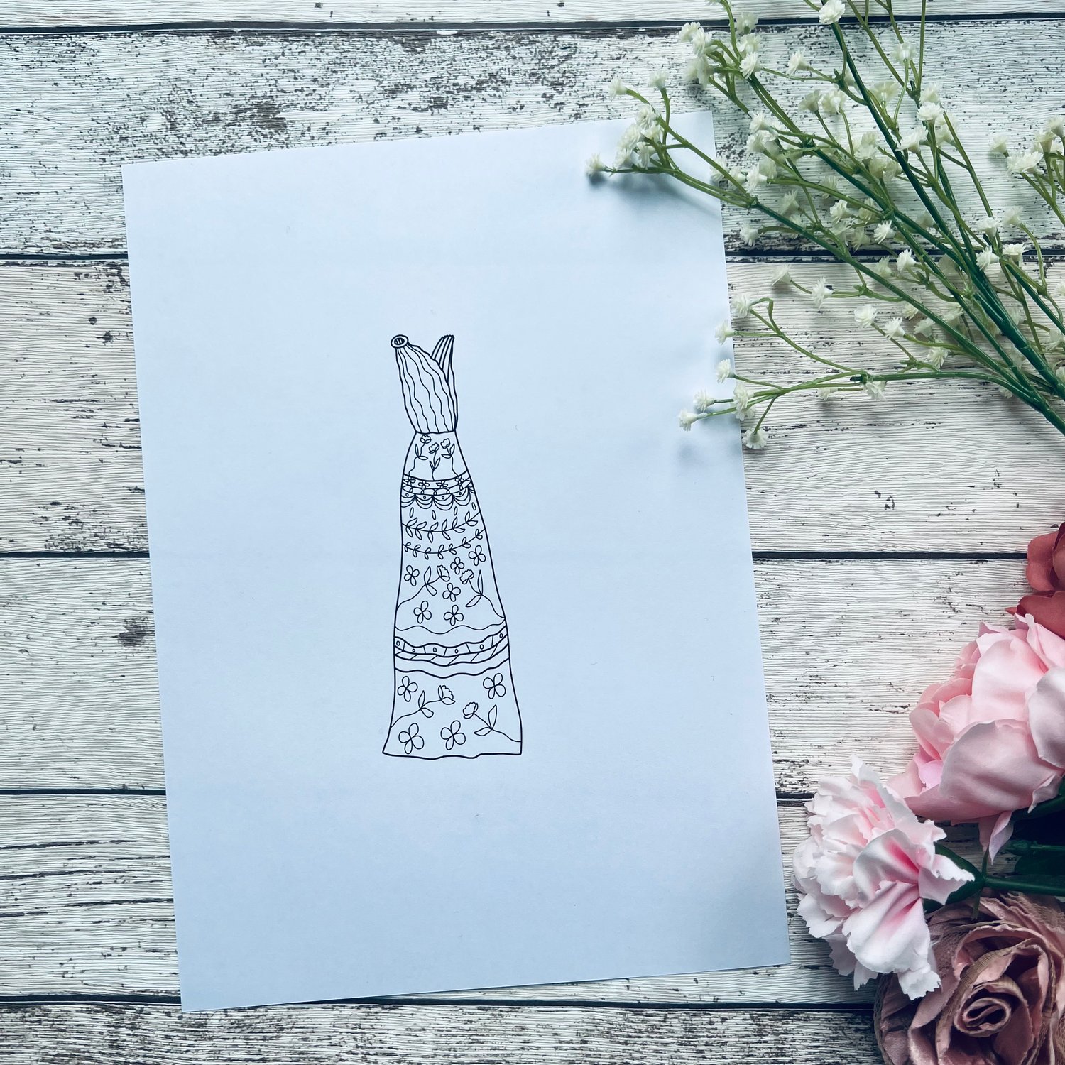 I'm delighted to offer this lovely set of whimsical dresses for you to colour in!