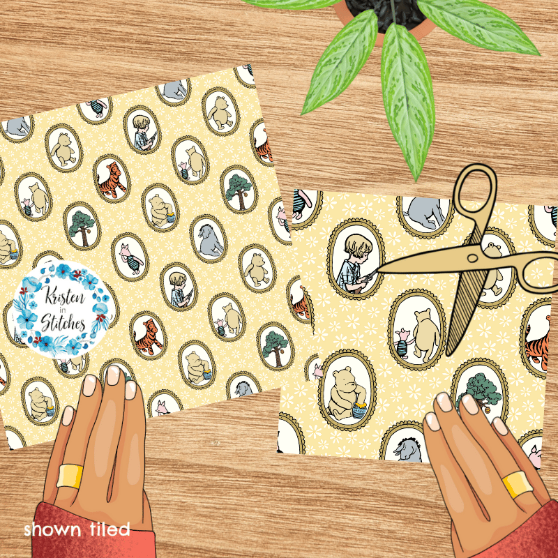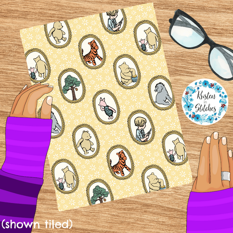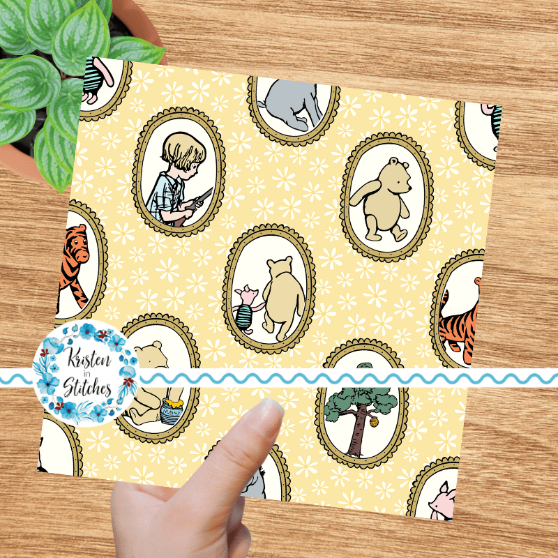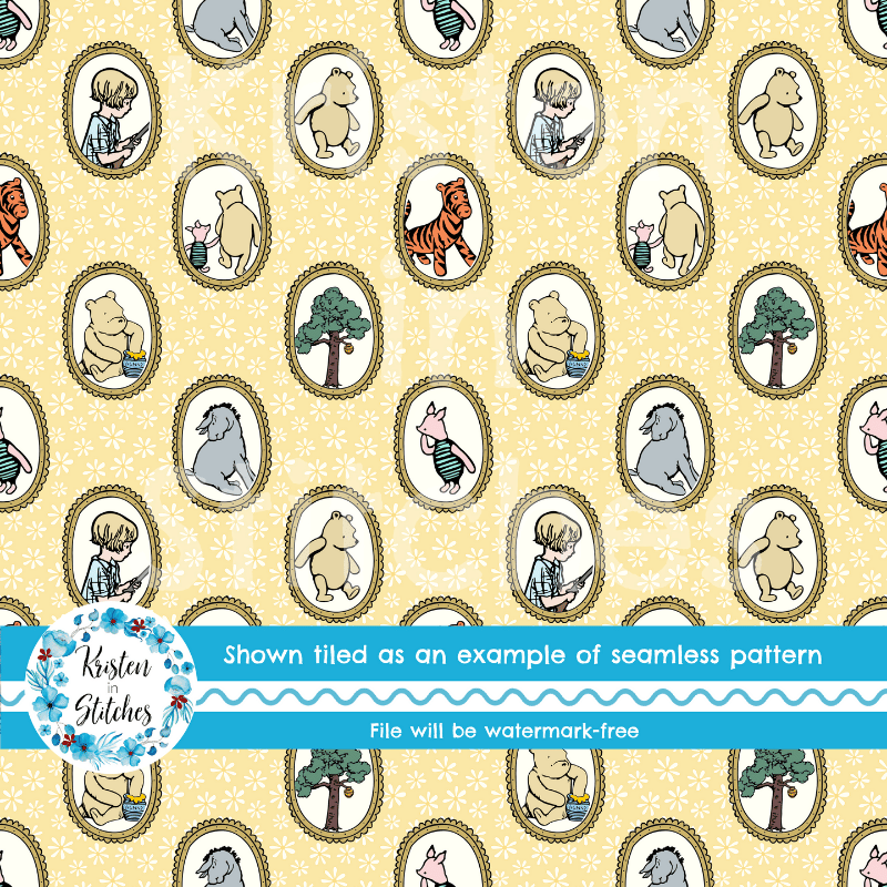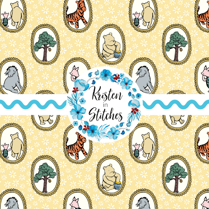 Classic Winnie the Pooh Storybook Friends Nursery Frames Seamless Pattern Yellow