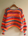 The Daphne is a beautifully textured cropped jumper with balloon sleeves. Her classic crew neck and ribbed cuffs are finished with cute jersey roll details. This jumper is designed to be knitted up using any left over DK yarn you might have (of course you can use new yarn too!). She's knitted up on 5&4mm needles. The pattern also contains all the info you need to achieve the cool colour mixing effect.